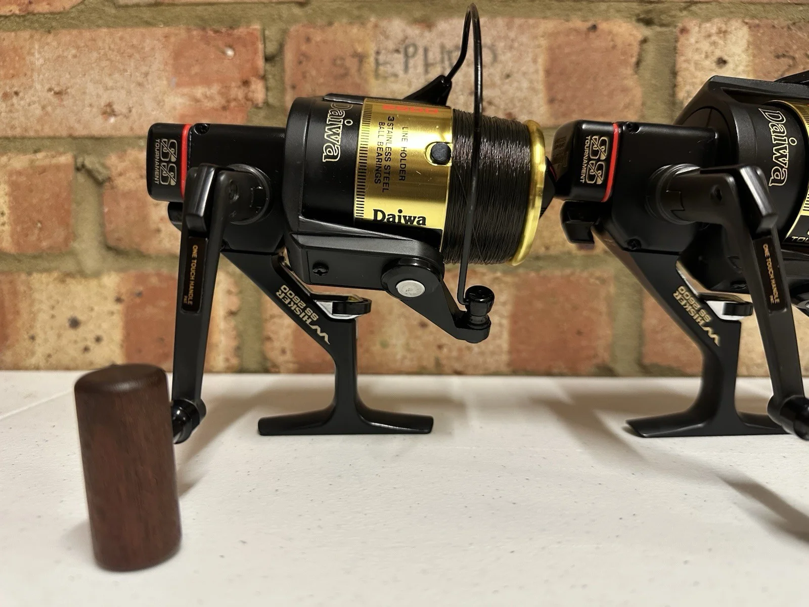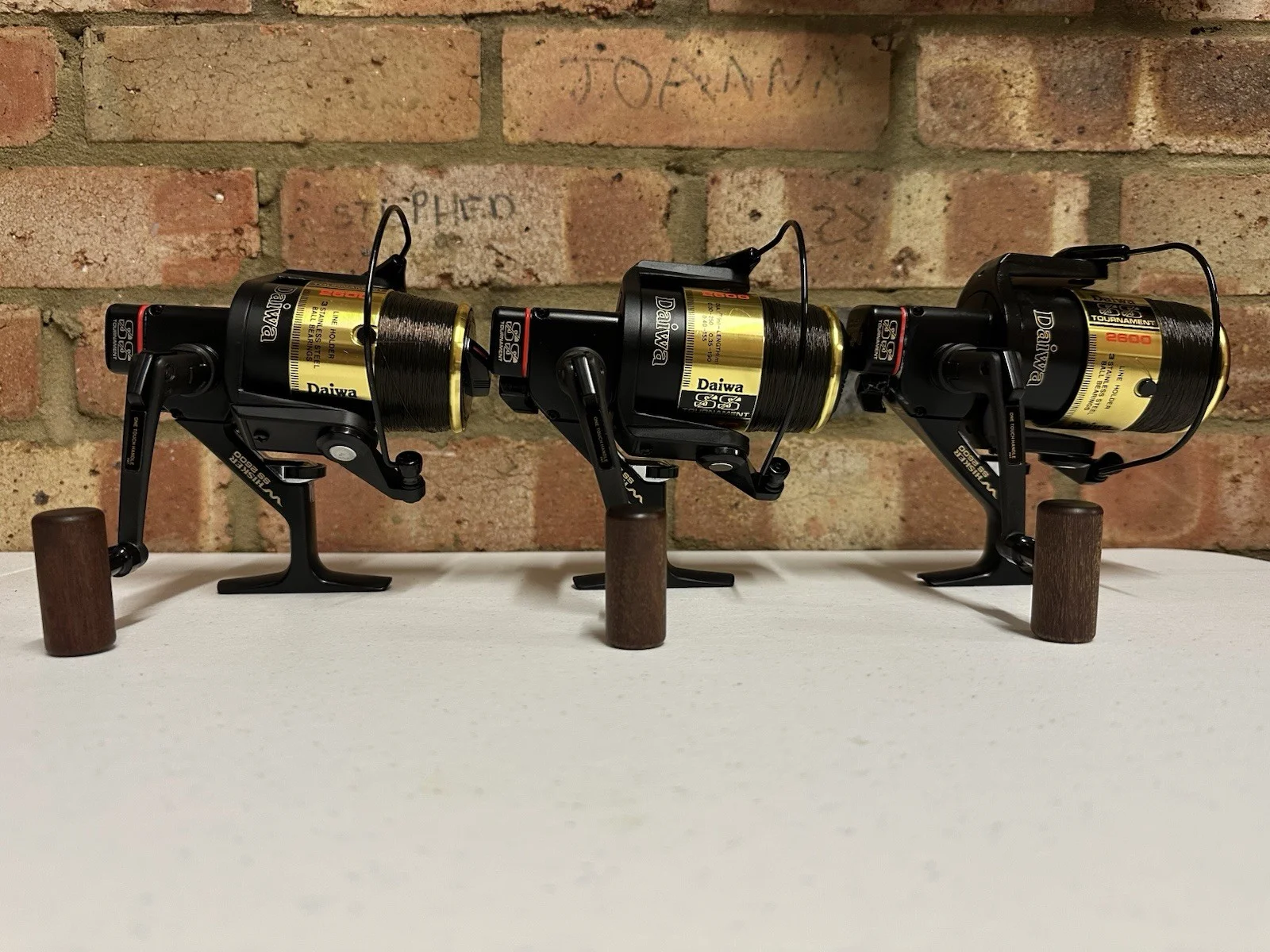 I have 2 sets of 3 of the SS2600’s, the first set belonged to my Grandfather, I managed to collect a clean non abused set and sent them straight to Western to have the wooden handles fitted at a cost of £52 a handle. They where then given to a very reputable Daiwa reel servicer local to me. I had each reel fully stripped, cleaned and serviced using the correct grease. He also quick dragged each of the original caps, they are all like the new Daiwa QD system. There is no carbon/ice washers fitted, the standard felt ones are perfect with the modification. I have used them once since the work has been done and they were brilliant. The only reason for the sale is I have been offered a rather more expensive set of reels and I have to free up some cash. Please don’t make any silly offers, if your reading the advert you clearly know what your looking for and will know what there worth. I genuinely believe you will not find another set in this condition with the correct modifications done. If you require anymore pictures I am happy to take and send.