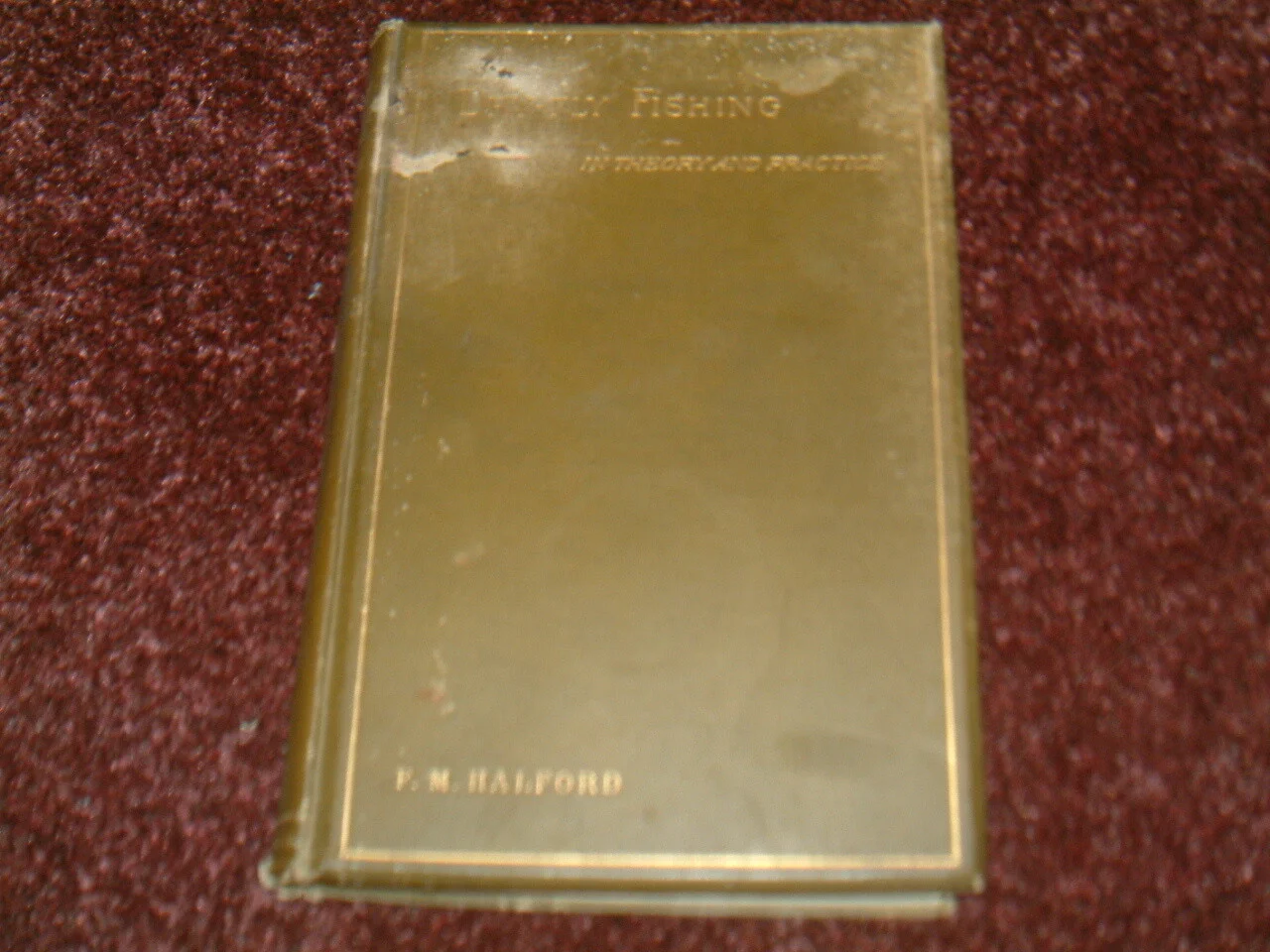 Dry-Fly Fishing in Theory and Practice by Frederic M. Halford.1889 2nd edition. The book has tanning to pages, some pages with foxing/mark. There is foxing on rough-cut page edges when the book is closed. The covers have marks/fading on the book title, cup mark and heavy fading wear on the back cover.Please see photo's.