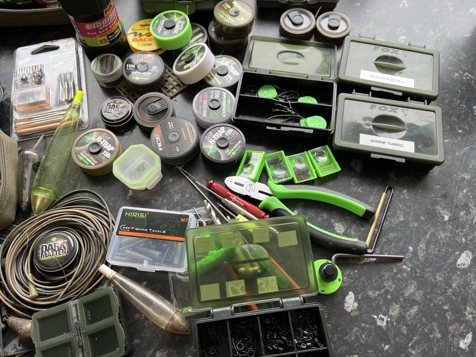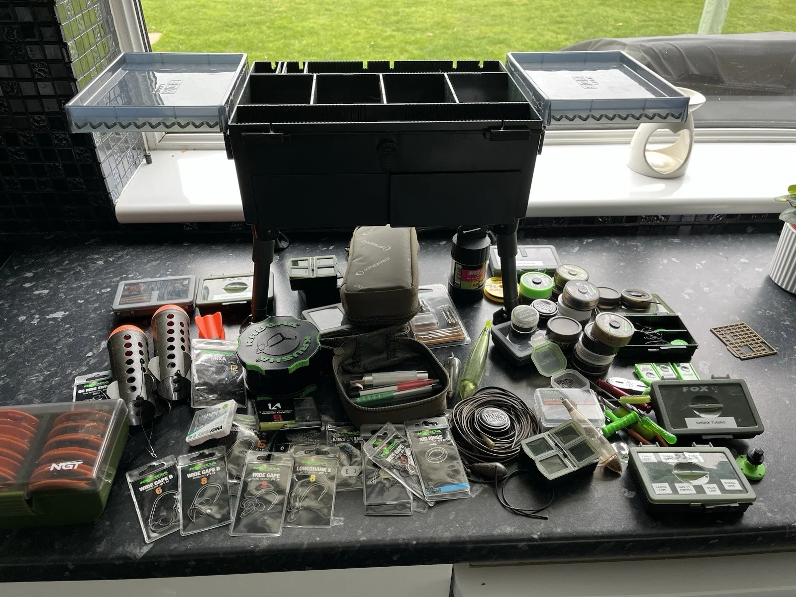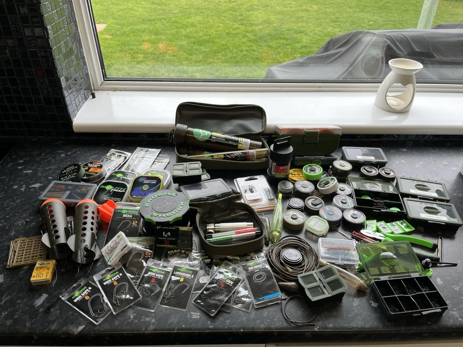 Nash Rig station and carry bag. Fully loaded with all types of tackle, mostly Korda but also some Fox and other brands.Braids are mostly at least 50 to 100% full. Hook sharpening files, Korda Crusher, too much to list. Hopefully the photos have captured everything.Any questions please let me know