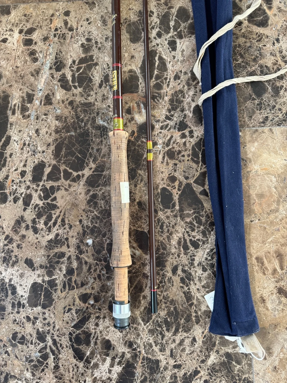 The Hardy Richard Walker "Little Lake" 9' 2 piece #7 Fly Fishing Rod is a vintage piece crafted by the renowned brand Hardy in the United Kingdom. Made from fibreglass, this fly fishing rod is designed for maximum line weight of 7, perfect for gentle yet effective fishing. The rod is in good condition, has a 10" cork handle and alloy up screw fitting and is generally used for trout fly fishing.The rod comes with its original Hardy bag.Please see photos as they form part of the sale.