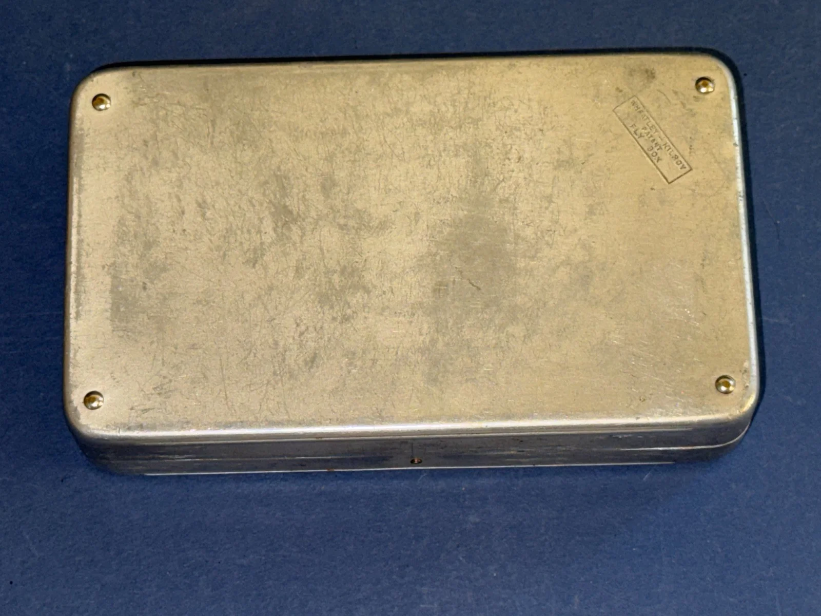 A GOOD VINTAGE WHEATLEY KILROY FLY BOXWITH A SELECTION OF TROUT FLIES-MAINLY DRY6" X 3.5" X 1.25" (APPROX)PLEASE SEE IMAGE