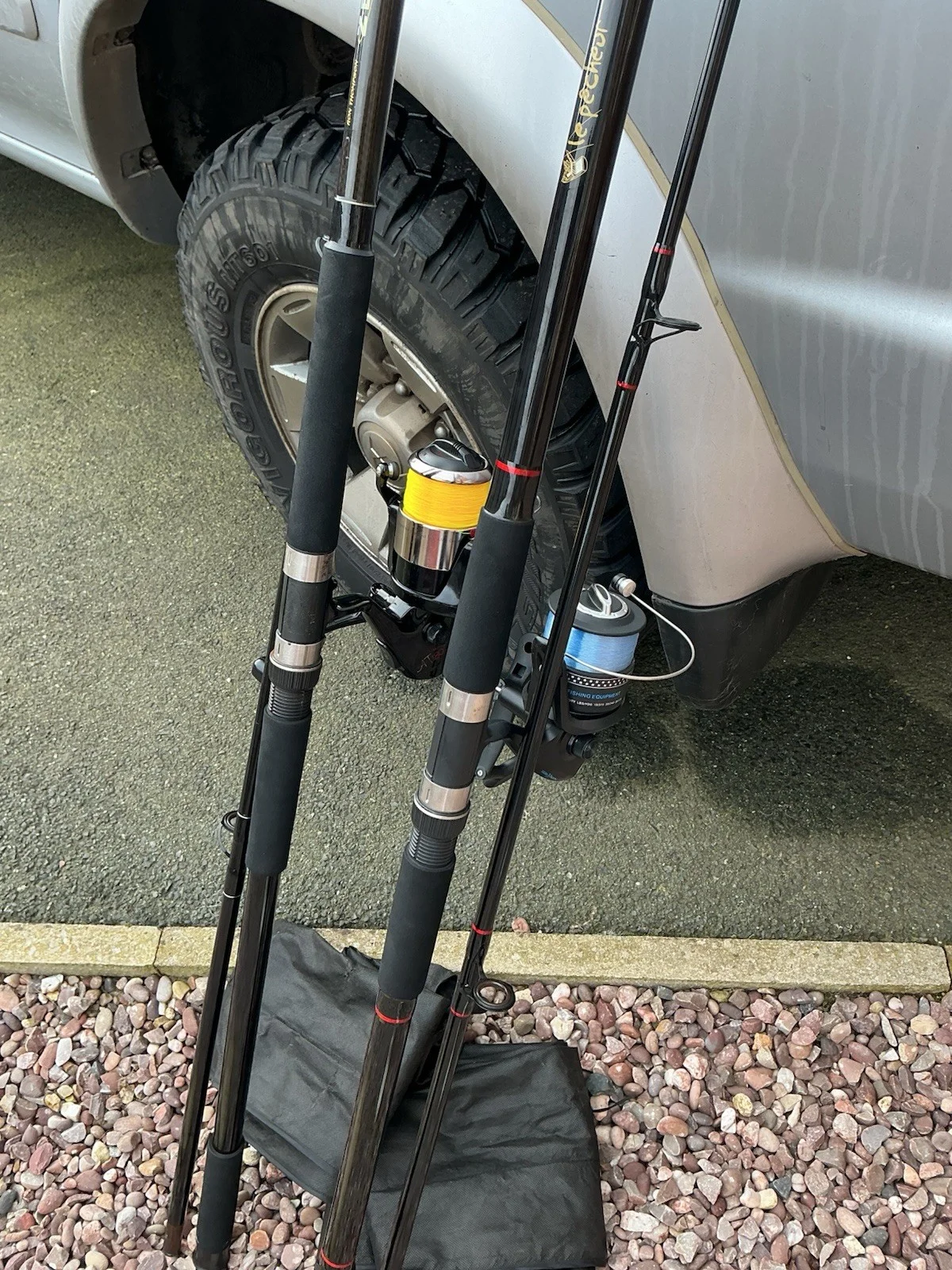 Two beach rods and reels used once my husband health is decreasing fast I know little about fishing buyer can collect from Clayton St54ag please look at other fishing items thank you