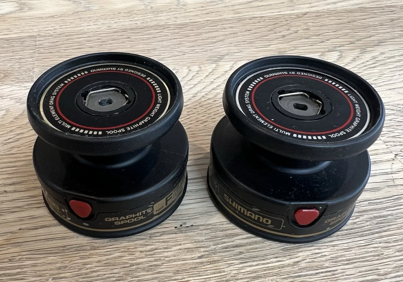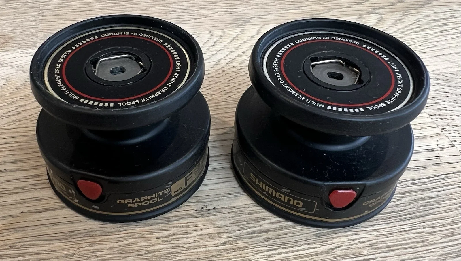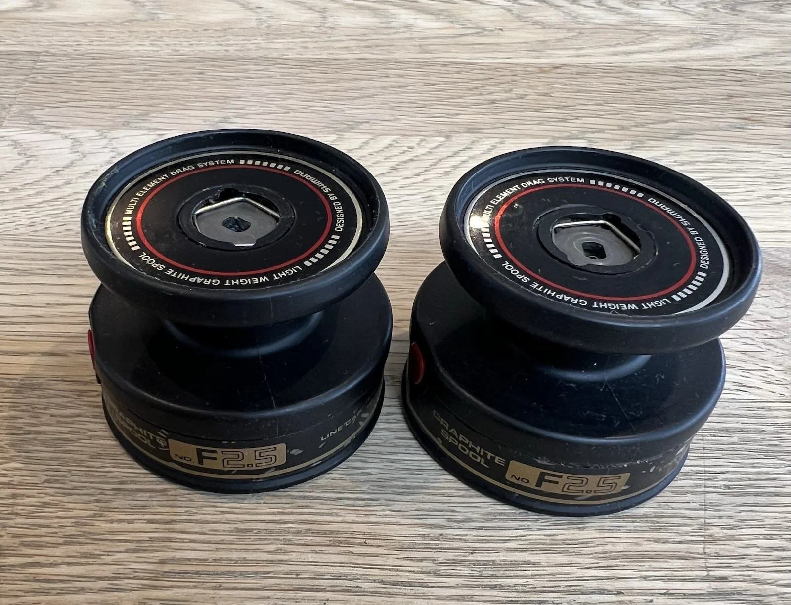 On Offer !!!2 X Genuine Shimano Triton Graphite Spare Spools - F 2.5 Front drag fitting - 2500 Size !!!Suits βMiniβ Bait Runner or Standard Spinning Reel πππ£π