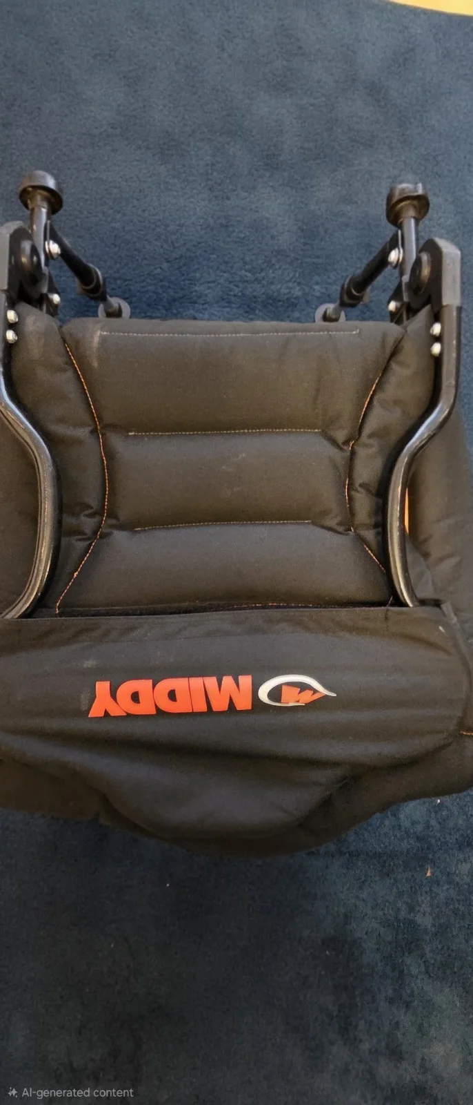 Middy MX100 feeder chair with accessories including side tray in used condition, legs & sticks have marks from clamps but are still usable, seat is in good condition as seen in photos, tray has been re riveted in place as original rivets broke, please inspect photos thoroughly as item is sold as seen, cash on collection from Blackpool, due to size postage not available.Only selling as bought a new chair.