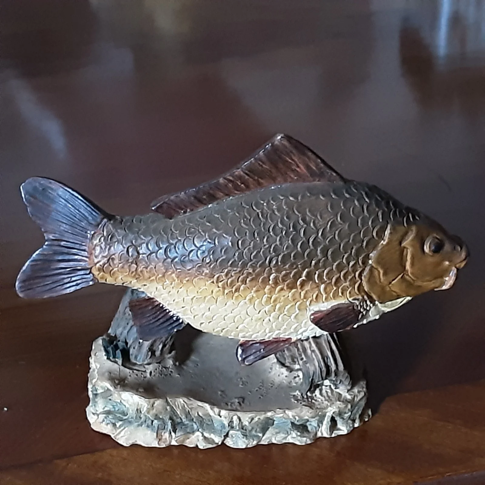 The Anglers Showcase Collection Danbury Mint Fish Common King Carp Fishing Model is a detailed and collectible fishing composite model depicting the iconic Common King Carp. This piece is part of a series of exclusive models designed by renowned Danbury Mint, perfect for anglers and collectors alike. Each model is meticulously crafted to showcase the beauty and intricacies of various fish species, making it a unique and valuable addition to any fishing enthusiast's collection. One of the Showcase Collection for display many more to collect they measure approx 3 inches long.