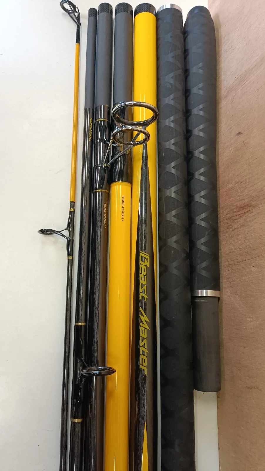 Shimano BeastMaster 7 piece travel sea fishing rod .Absolutely great condition.fully bagged and comes in travel case .the only blemish on the rod is on section 2 where there are a few marks where is has rbeen on the rest ( please see photo) this in no way affects the performance of the rod . great rod that fits in your suitcase.
