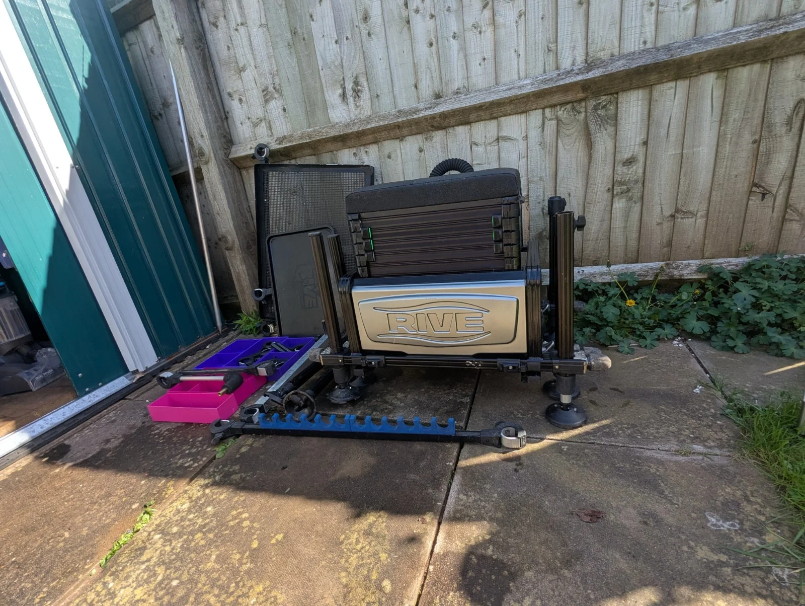 The Rive Seat Box and Fishing Bundle is a high-quality angling accessory designed for coarse fishing in freshwater environments. Made from a combination of durable plastic and metal materials, this black seat box offers ample storage space for fishing essentials while providing a comfortable seating option for anglers. With the trusted Rive brand behind it, this seat box is a reliable choice for any fishing enthusiast looking for a convenient and functional piece of equipment. The adjustment knob have seen better days but are perfectly functional.