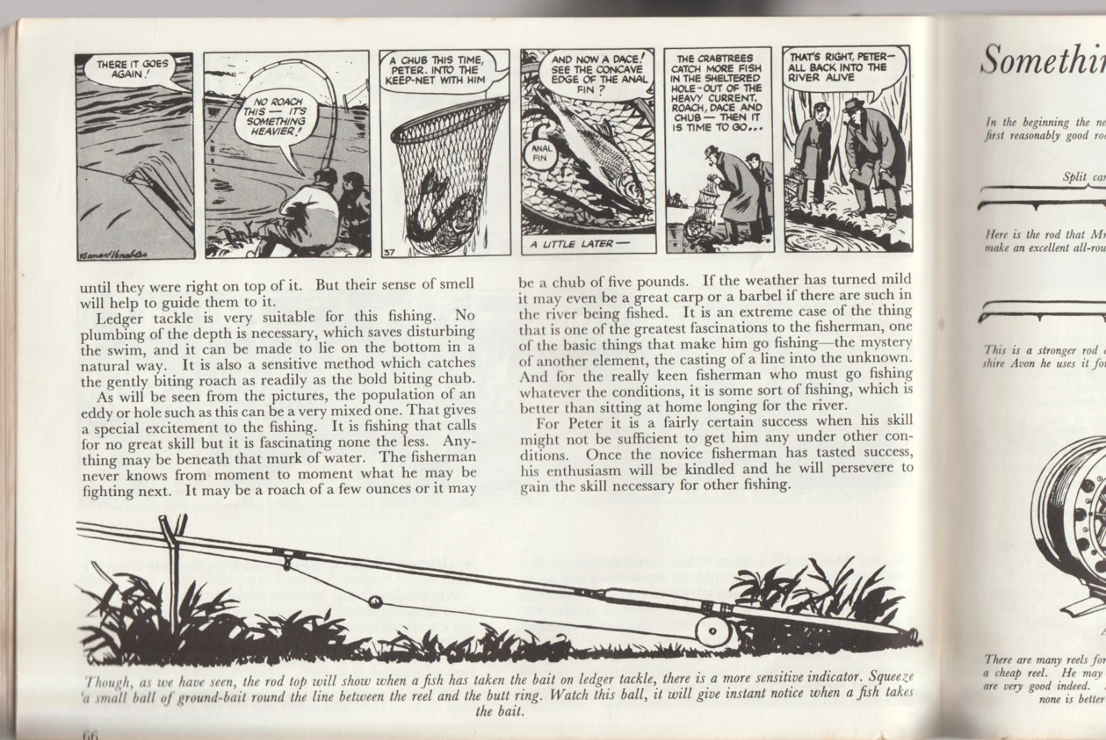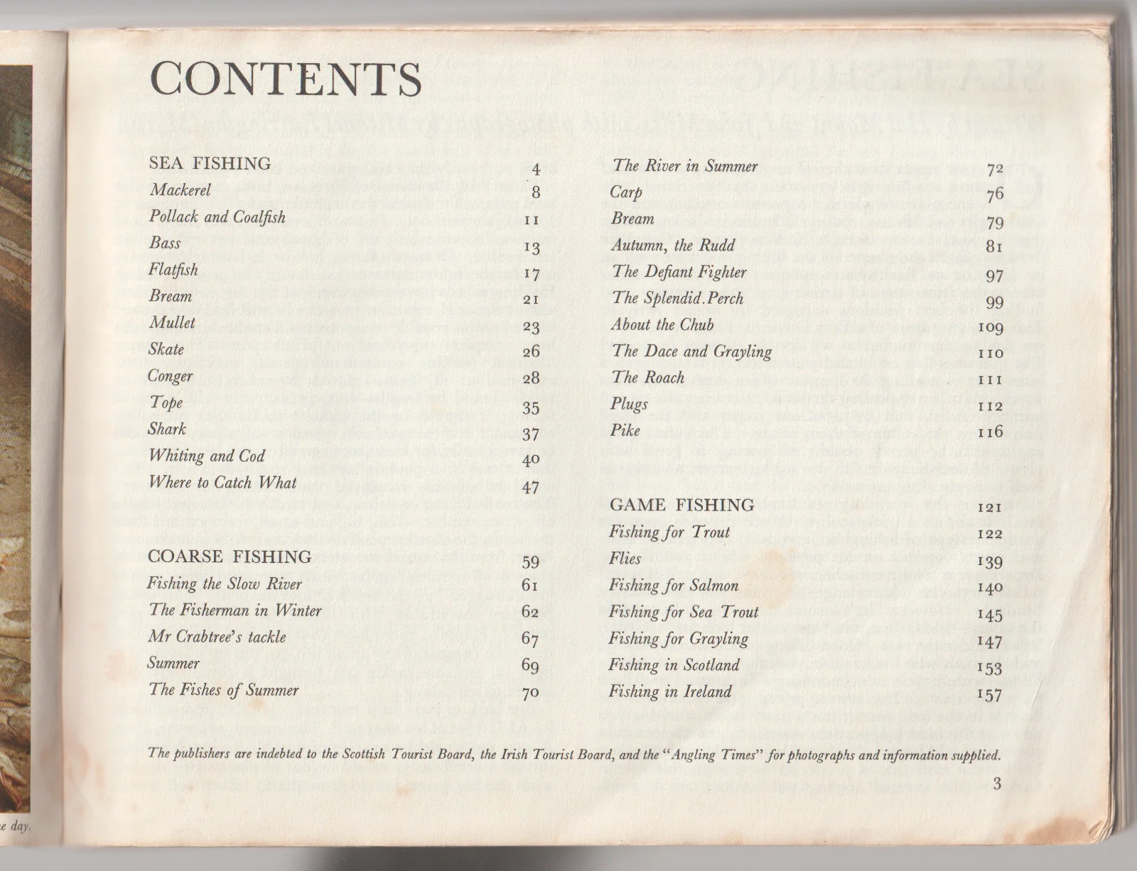 THIS IS THE CLASSIC VINTAGE BOOK - "FISHING WITH MR.CRABTREE IN ALL WATERS" IN WHICH BERNARD VENABLES PLAYS A LARGE PART IN IT'S CREATION. IT WAS PUBLISHED BY DAILY MIRROR PUBLICATION AND HAS HAS THE ADDED BONUS OF BEING THE FIRST IMPRESSION. THE BOOK IS of 160 PAGES, IN THREE MAIN SECTIONS - SEA FISHING, COARSE FISHING, AND GAME FISHING, WITH BERNARD VENABLES WRITING AND ILLUSTRATING THE COARSE FISHING SECTION, AND ILLUSTRATING THE GAME FISHING SECTION. THERE IS A SIGNATURE ON THE FRONT AND BACK OF THE FRONT COVER AND ON THE BACK OF THE BACK COVER AND IT HAS A 'WELL THUMBED' APPEARANCE, NEVERTHELESS IN A GOOD SOUND COMPLETE CONDITION.