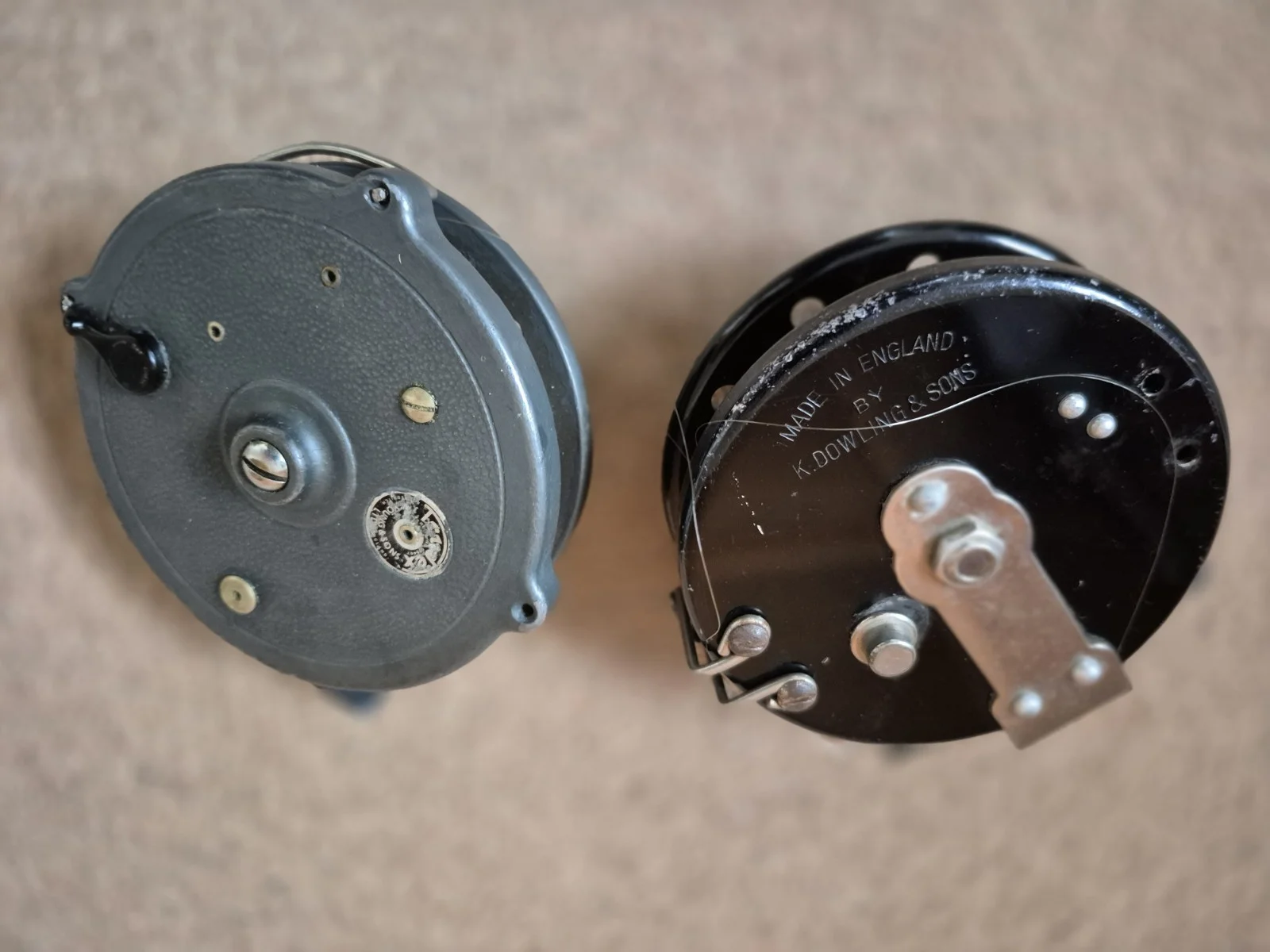 These are two classic reels. donated but not used, so would bring others some use.Classic style Centrepin, line type not known