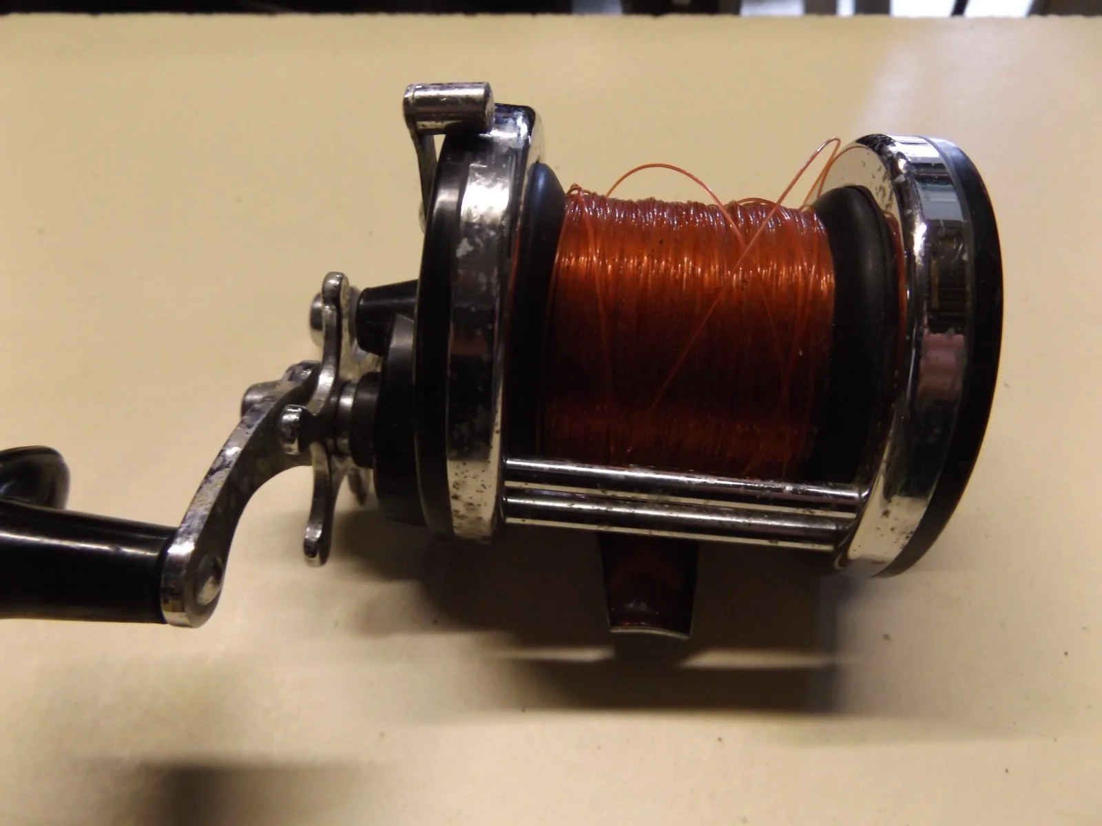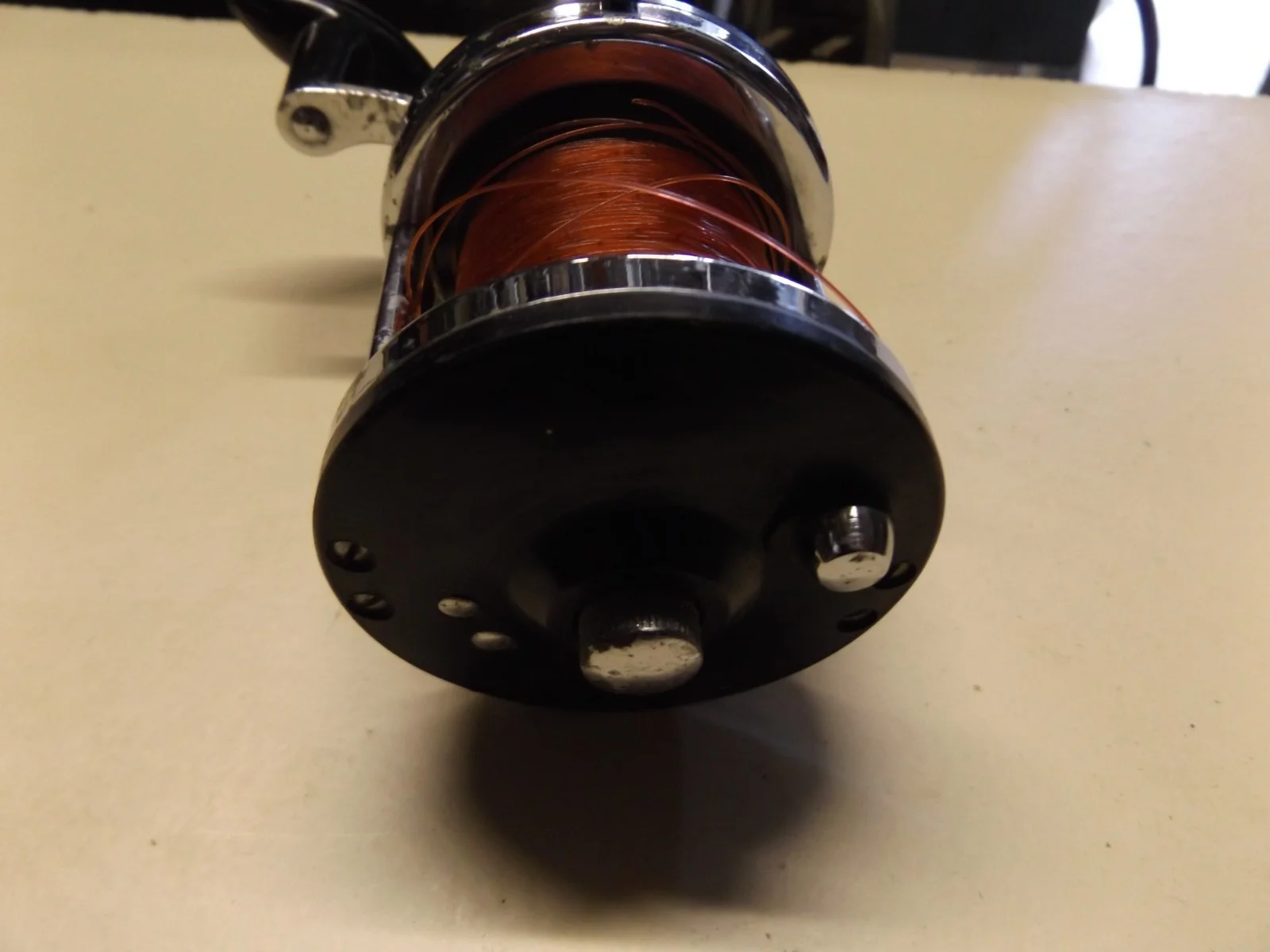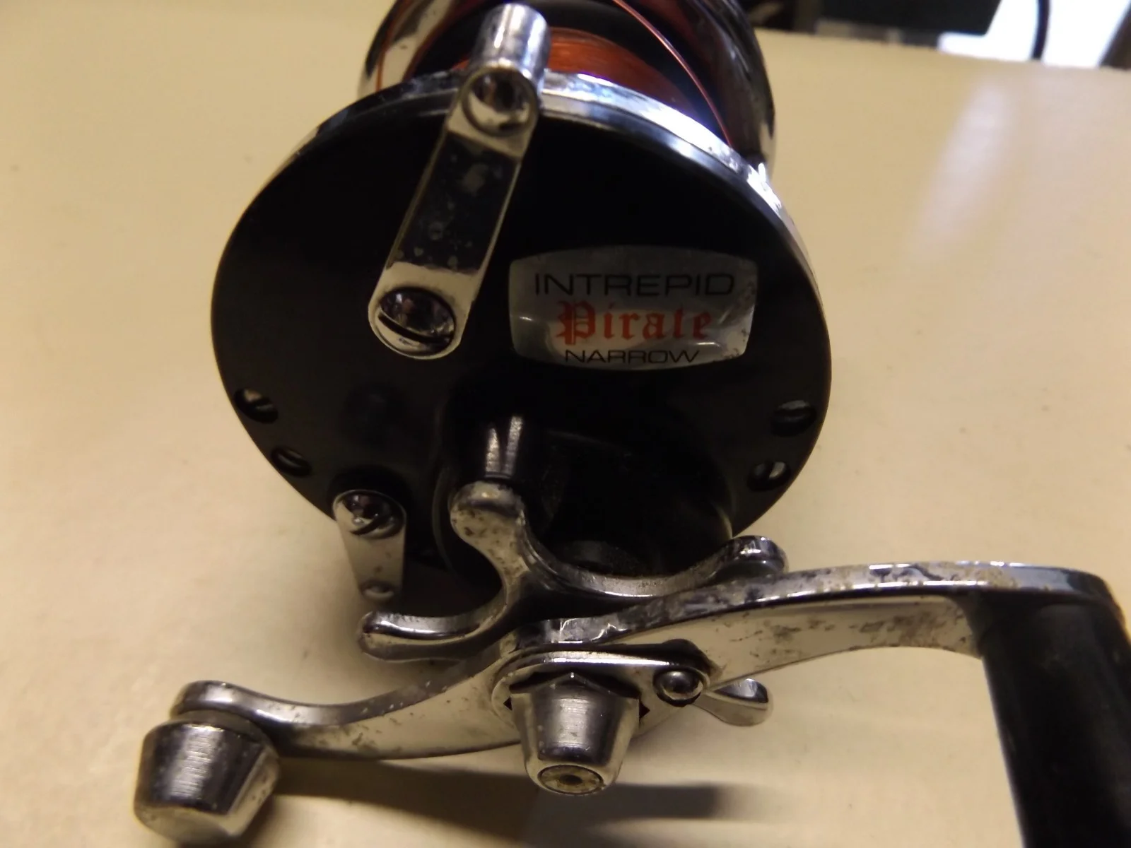 INTRIPED PIRATE NARROW FISHING REEL IN GOOD USED CONDITION.LOADED WITH NEW AND UNUSED 25LB. LINE.MADE IN ENGLAND.