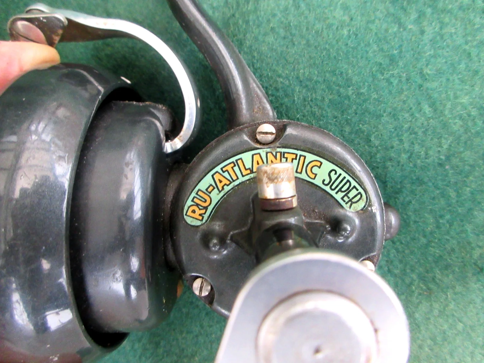 THIS IS A TOP QUALITY, SCARCE REEL DATING FROM THE FIRST HALF OF THE 1900's AND IN A FINE USED CONDITION, IT BEARS THE NAME "RU-ATLANTIC SUPER", AND "MADE IN FRANCE. MARQUE DEPOSEE BRELVETE S.G.D.G.". IT IS DARK GREEN IN COLOUR AND FEATURES INCLUDE A SINGLE ARM LINE RETRIEVE. ON/OFF SWITCH FOR THE ANTI-REVERSE, THUMB SCREW FOR SPOOL RELEASE, AND UNSCREWING HANDLE FOR EASE OF STORAGE. IT IS IN A REMARKABLY GOOD CONDITION, WITH PAINT LOSS INSIDE THE SPOOL (WHERE THE LINE SITS) THE ONLY THING WORTH MENTIONING. PLEASE NOTE THIS REEL OOZES QUALITY AND WAS NO DOUBT A VERY EXPENSIVE ITEM IN IT'S DAY. I AM SELLING IT WITH AN UNCONDITIONAL MONEY BACK GUARANTEE.