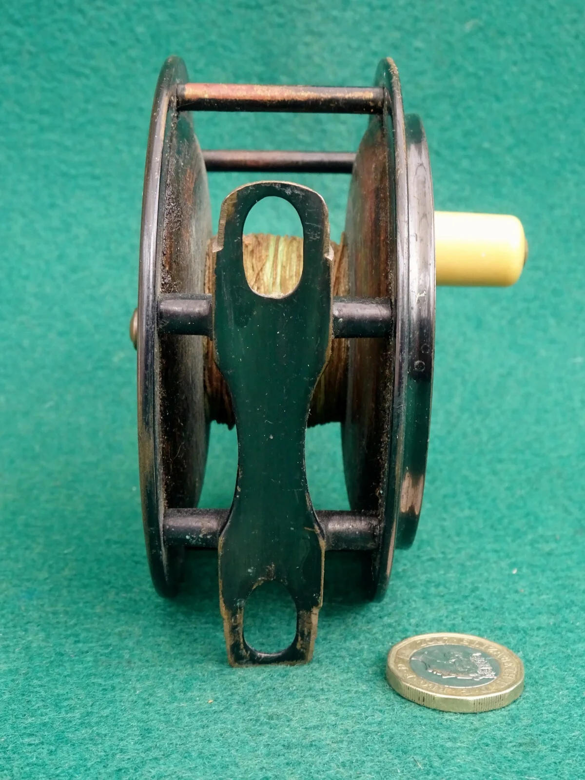 C. LATE 1800's 4" SALMON FLY REEL. "H.MOORE, LIVERPOOL". A REAL BEAST @ 0.5 KG.