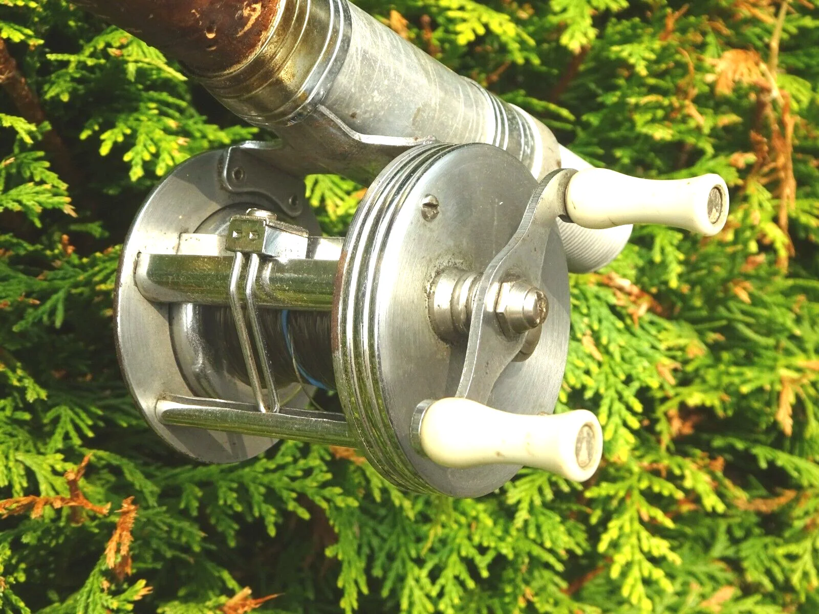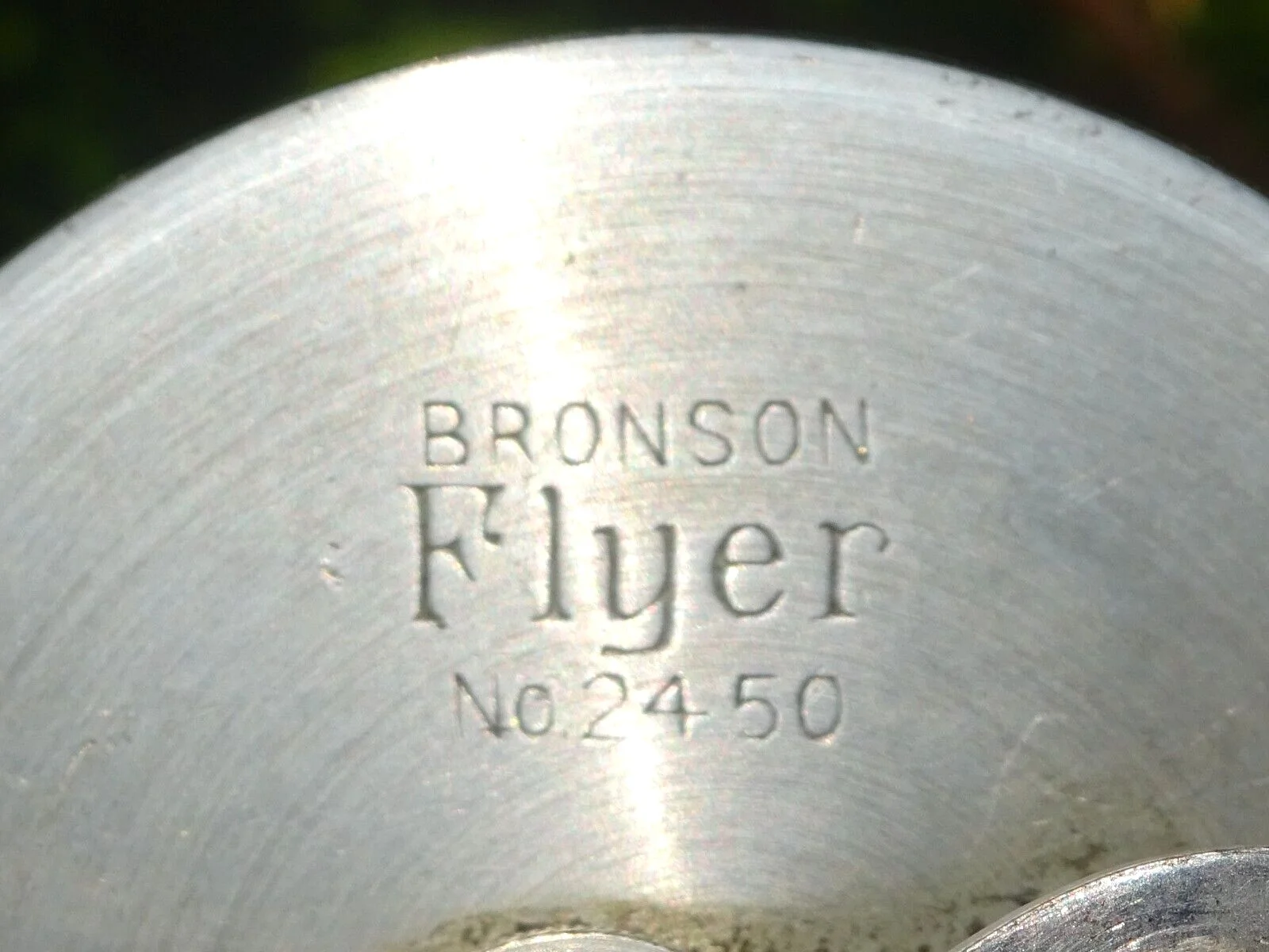 FOR VERY MANY YEARS MULTIPLYING REELS HAVE BEEN VERY WIDELY USED IN THE U.S. AND BRONSON HAVE BEEN ONE OF THE MAIN MANUFACTURERS FOR GENERATIONS. THIS IS THEIR "FLYER No.2450" MODEL IN A FINE WORKING CONDITION. FEATURES INCLUDE OFFSET CRANKWIND WITH TWIN HANDLES, ON/OFF CLICK-CHECK CONTROL, AND A LEVEL WIND MECHANISM. IT IS IN AN EXCELLENT CONDITION, BUT IN THE INTERESTS OF COMPLETENESS I MENTION THAT ONE OF THE TWO SMALL BOLTS SECURING THE FACEPLATE APPEARS TO BE A BRASS REPLACEMENT. I AM SELLING THE REEL WITH AN UNCONDITIONAL GUARANTEE. PLEASE ALSO SEE MY OTHER VINTAGE FISHING ITEMS AS I WILL COMBINE POSTAGE FOR MULTIPLE PURCHASES.