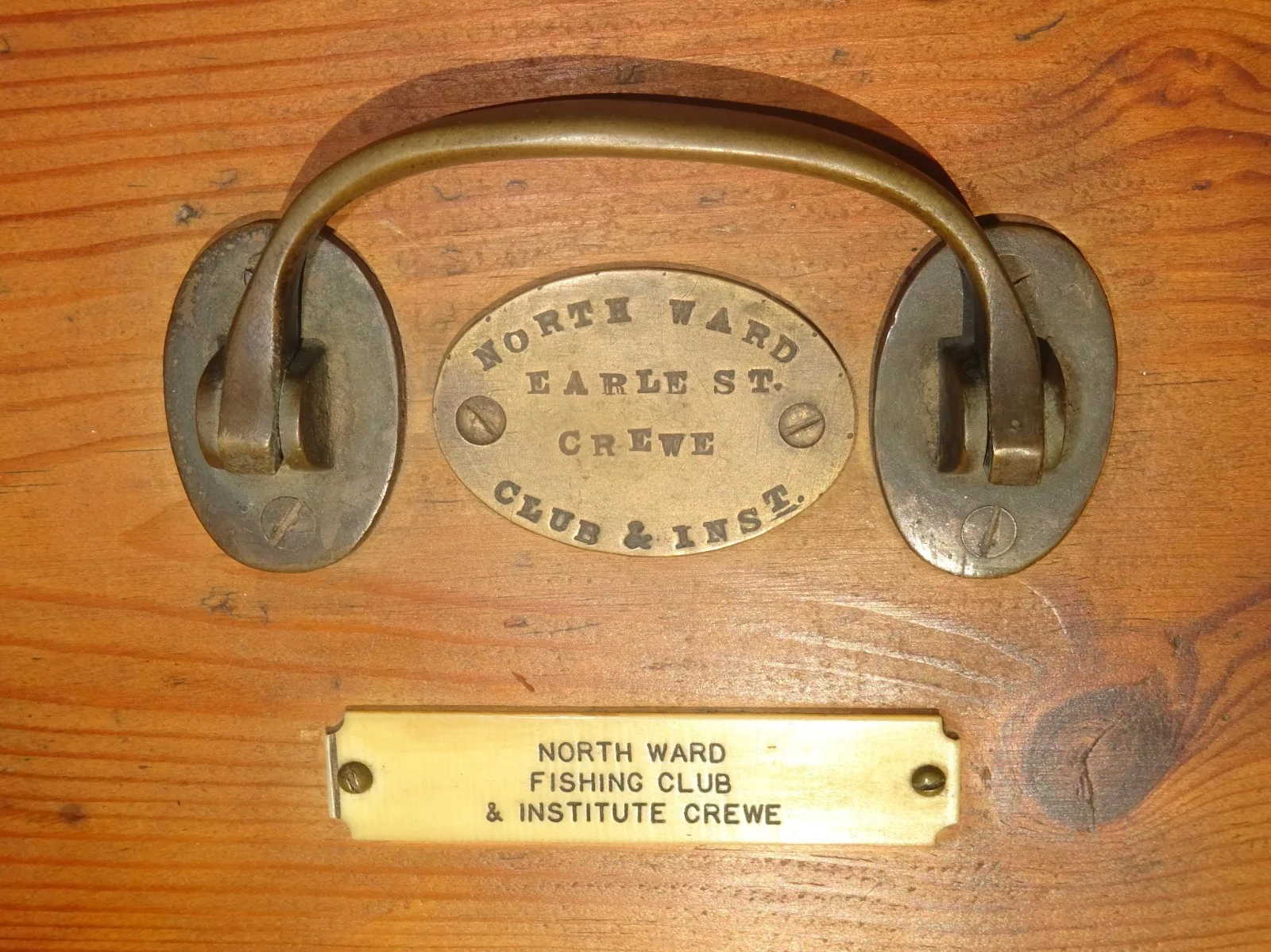 IF VINTAGE TACKLE MEANS NOSTALGIA THEN THIS HAS IT IN BUCKETS FULL. IT IS THE OFFICIAL COMPETITION SCALES IN IT'S ORIGINAL LOCKABLE PINE BOX PROBABLY DATING FROM THE FIRST HALF OF THE 1900's, CONTAINING ORGINAL WEIGHING SCALES, AND BEARING DETAILS OF IT'S PREVIOUS OWNER(S), NORTH WARD FISHING CLUB. CREWE. THE BOX MEASURES 14 INCHES LONG BY 7.5 INCHES WIDE AND 7 INCHES HIGH, HAS A STURDY BRASS FOLD-AWAY HANDLE ON TOP TOGETHER WITH A BRASS PLAQUE ENGRAVED "NORTH WARD, EARLE ST., CREWE. CLUB & INST." AND ON A BAKELITE LABEL "NORTH WARD FISHING CLUB & INSTITUTE, CREWE". IT COMES COMPLETE WITH KEY, AND INSIDE IS A VINTAGE BRASS FACED "SALTER" SCALE FOR WEIGHING UP TO 50 LBS IN 4OZ GRADUATIONS, AND A (MORE MODERN) BAG TO HOLD THE FISH. IT LOOKS AS THOUGHT THE NEEDLE ON THE SCALES HAS A NEAT REPAIR BUT OTHERWISE EVERYTHING IS IN SUPERB ORIGINAL CONDITION, UNCLEANED, WITH LOVELY PATINATION TO ALL THE BRASSWORK BOTH ON THE BOX AND SCALES. AN UNIQUE VINTAGE ITEM IN LOVELY CONDITION WITH I AM SELLING WITH AN UNCONDITIONAL GUARANTEE.