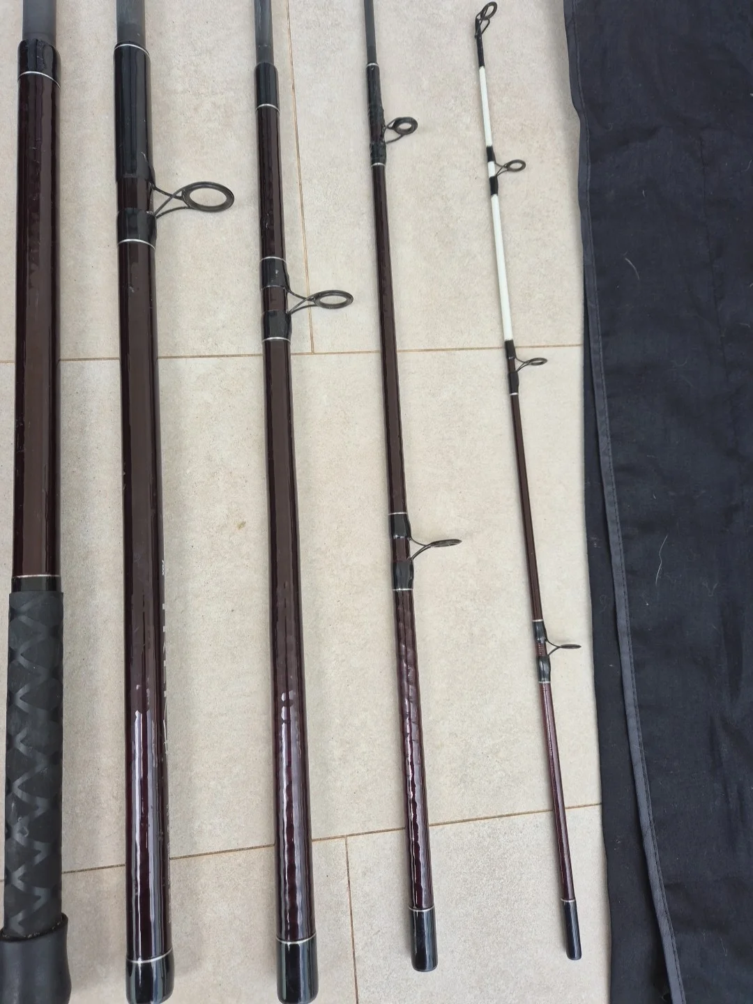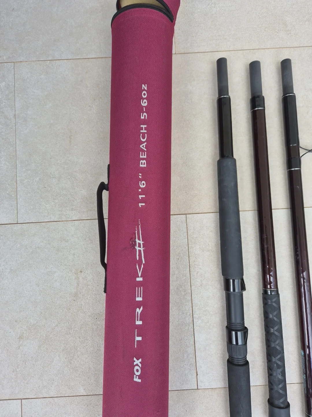 The Fox Trek 11ft 6in Beach Casting Surf Rod is a high-quality fishing rod designed specifically for saltwater fishing. Made from durable carbon fibre, it is lightweight yet strong enough to handle the demands of sea fishing. This 6-piece surf rod is equipped with a durable handle and is ideal for targeting a range of sea fish, making it a versatile and reliable choice for anglers looking to enhance their fishing experience.The zip is broken on the tube but the rods stays in ok
