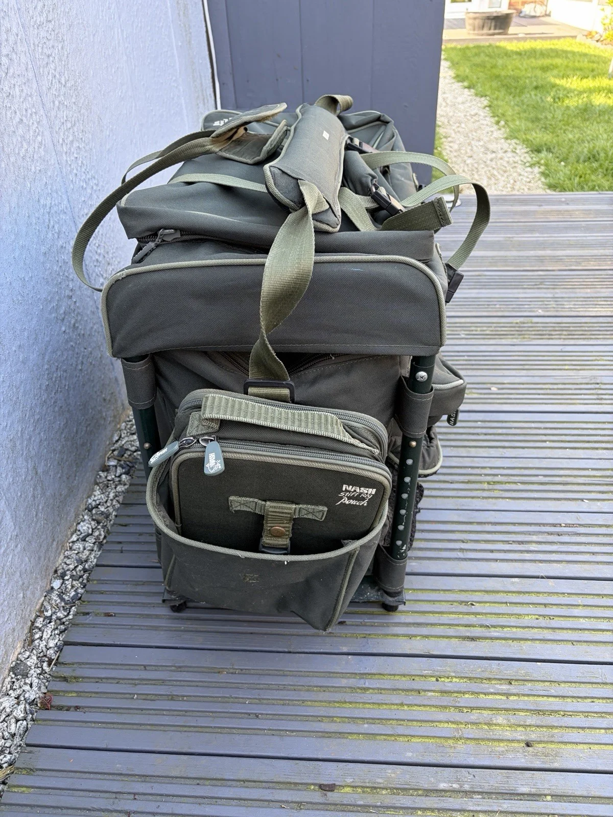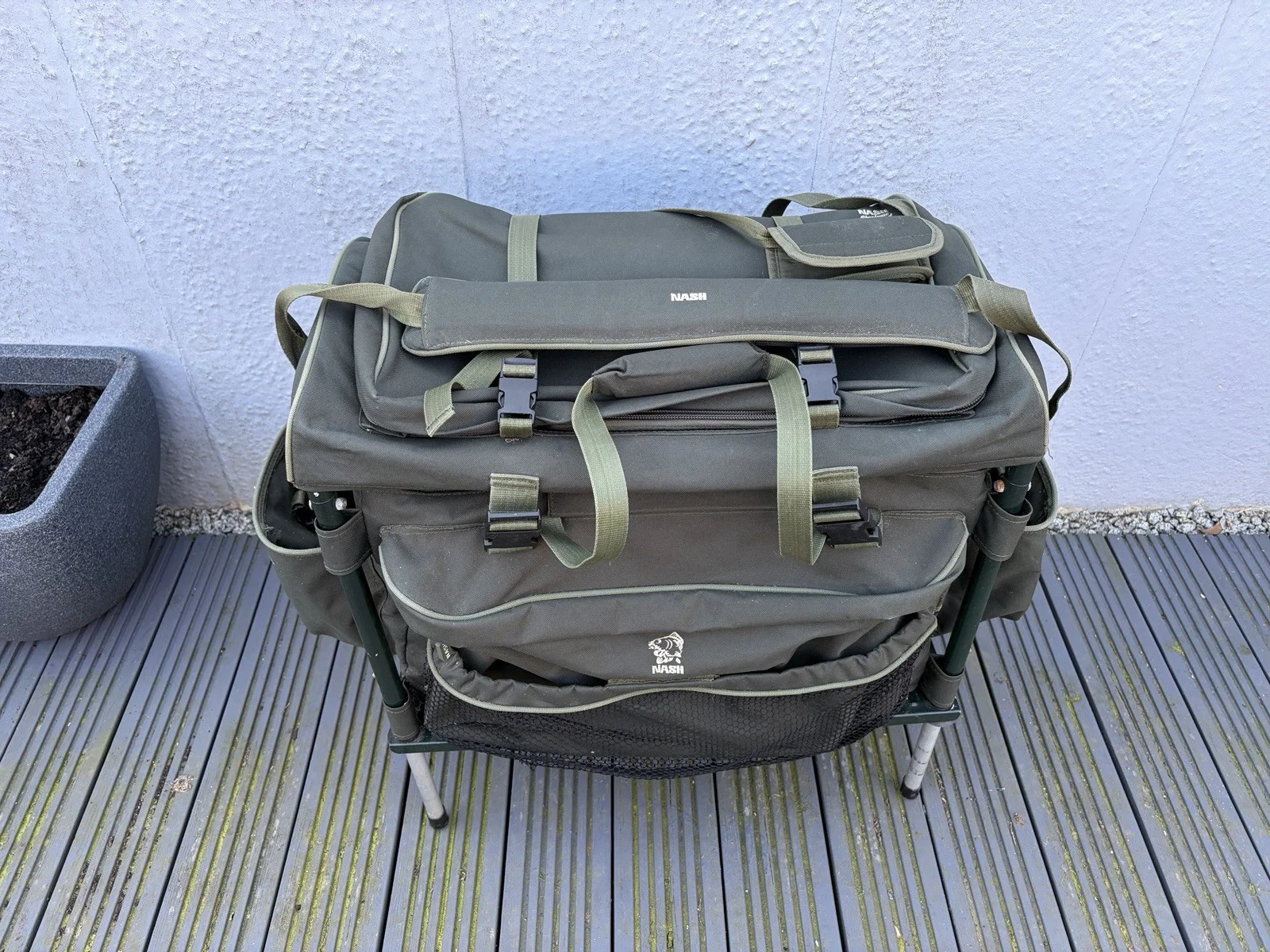 Nash speed load barrow bag rare bag now in good condition for its age comes with side pouches 1 is a rig board bag used other is bits bag Still has original rain cover in the top which pulls out over the bagCollection only due to size