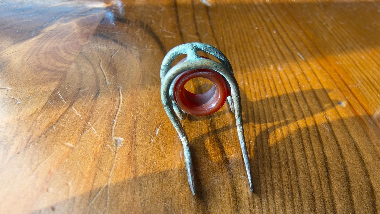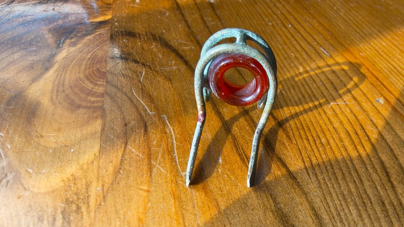 The product is 3 vintage agate rod rings, I took these off a greenheart rod tip, 2 rod rings and a tip ring, could be re-used, this is for the collector or vintage rod builder.Interestingly, the tip ring was placed on copper wiring whipping, then copper wire to bind the ring down and then whip threaded, made to last until I undone it!!Agate rings are in good condition, not grooved, wire frames aren't too bad, not corroded.PLEASE NOTE - the tip ring frame is broken but the agate ring is fine. This is a revised listing for accuracy.