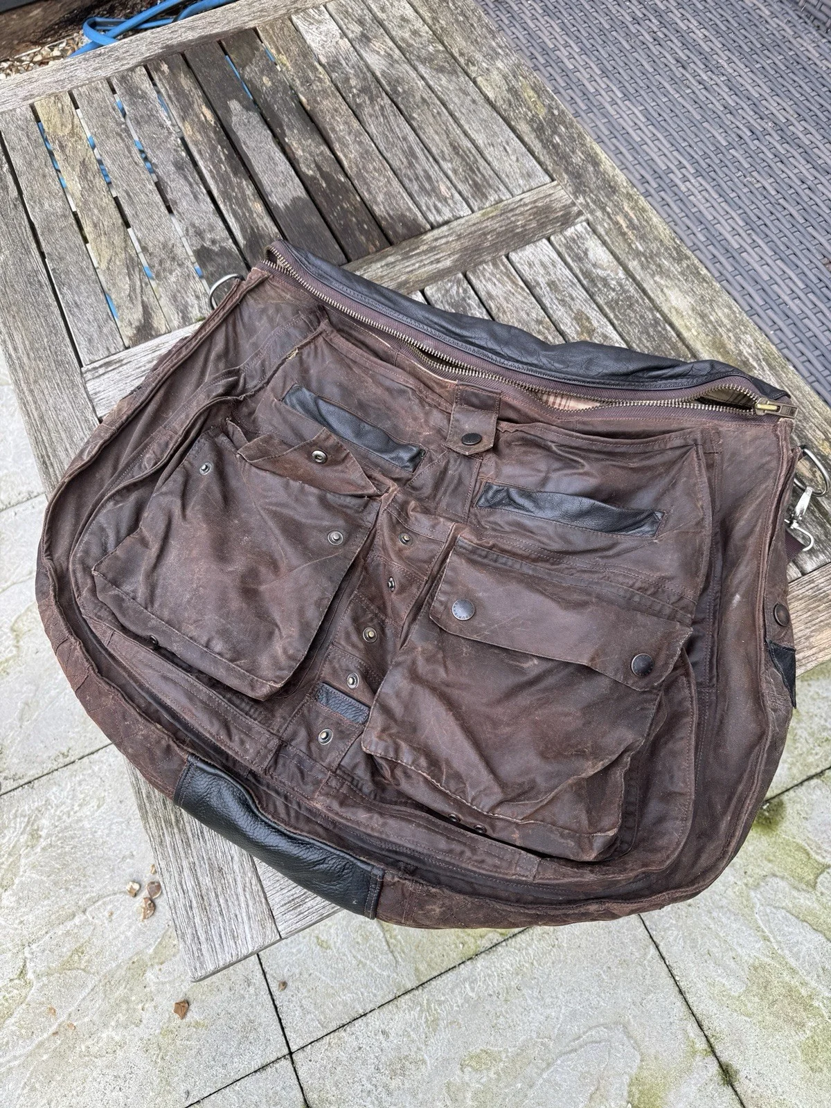 A unique vintage style fishing bag made from an old Barbour jacket. Plenty of storage for your tackle, lunch and flask! This is a beautifully crafted hand made bag that fits with the outdoor vintage style yet remains incredibly practical
