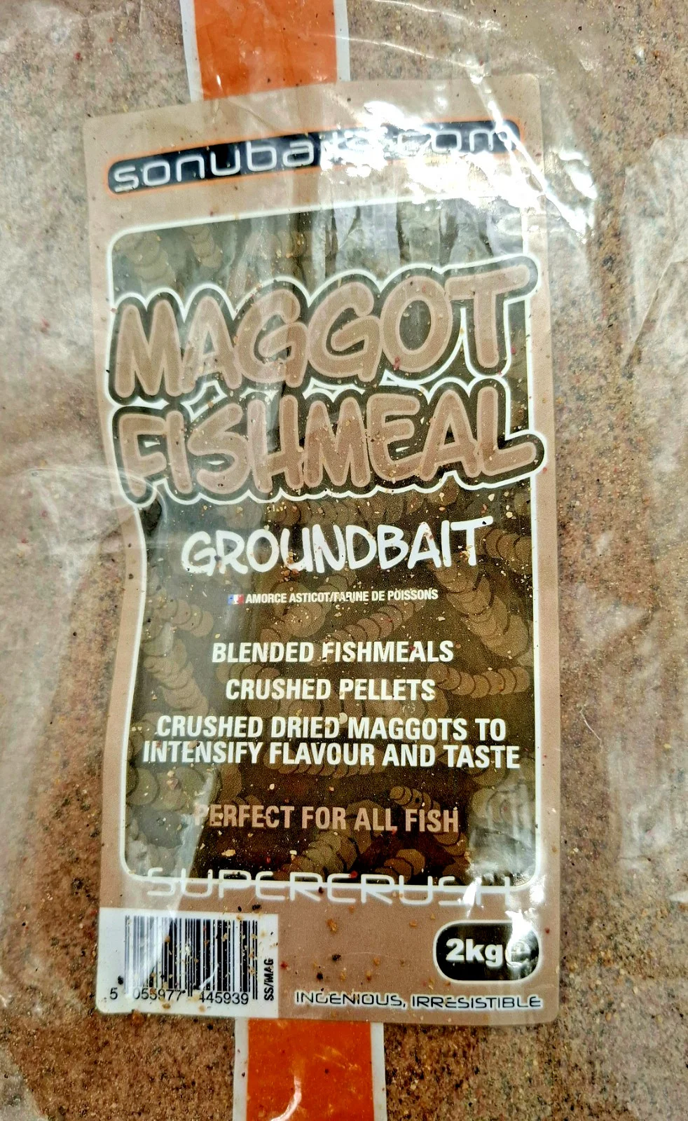 Dave's Discount Fishing4 bags of groundbait and pellets1 x Sonubaits Maggot Fishmeal Groundbait 2kg - this is unused but has been wrapped as there are some small holes in the bag.1 x Sonubaits Pro Expander Pellets 2mm - 445g1 x Sonubaits Pro Expander Pellets 4mm - 345g1 x Matchbaits Bag Em moist feeder pellets 2mm - 670gWe aim to sell all our products below RRPCheck out our shop for more great dealsMost items listed have been purchased as bankrupt stock so even new/new other products may not be subject to any manufacturers warranty.We do our best to select great quality used items to sell but please be aware that all used items may show signs of cosmetic wear and tear.Please note that items over 120cm in length cannot be sent to outside the mainland UK or to the highlands due to high postage costs. Any rod over 150cm to Scotland will incur extra charges for delivery.Please contact before buying to check postage costs to Northern Ireland, the Republic of Ireland or mainland Europe