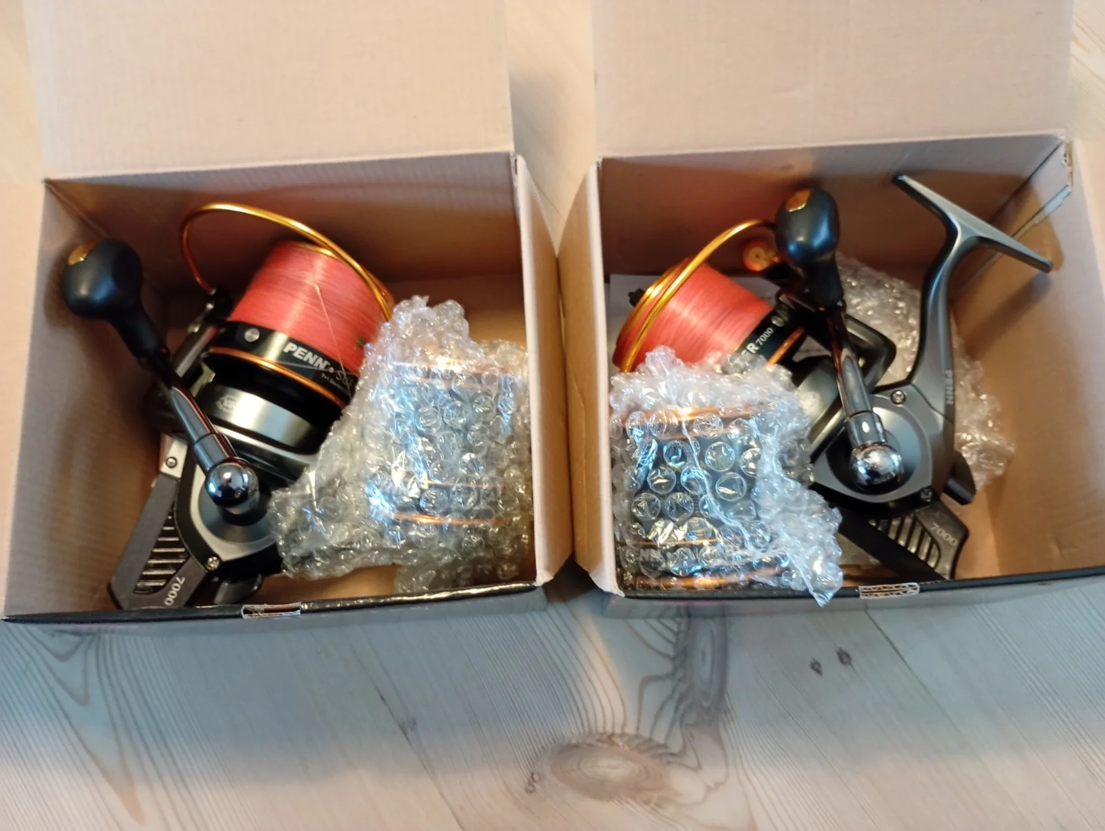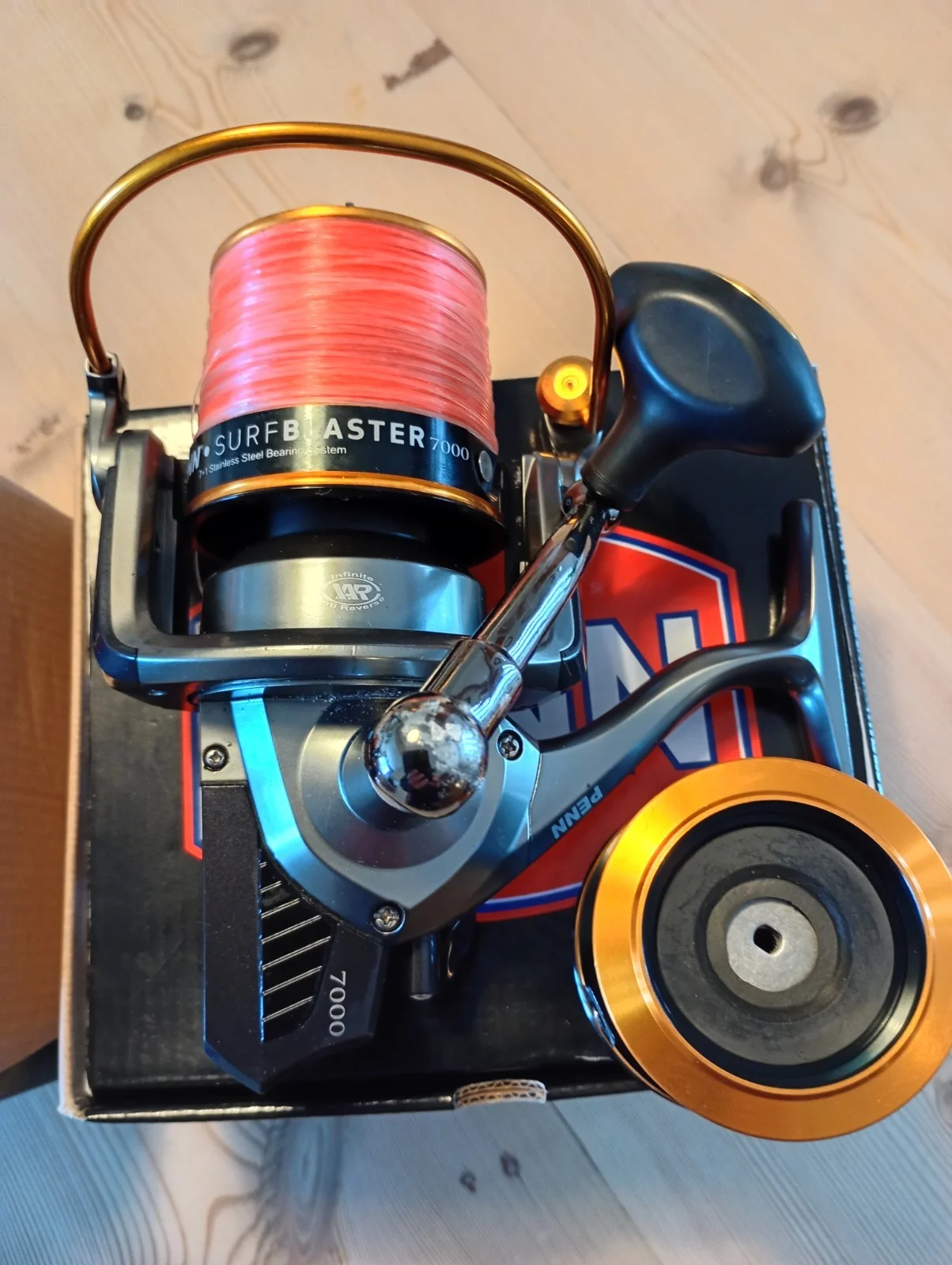 Two top quality Penn Surfblaster 7000 Fixed Spool Reel.In boxes with unused spare spools.Fully loaded with line and ready for use.Used four times only and stored since.Small scratch on one of the reel handles but otherwise excellent.