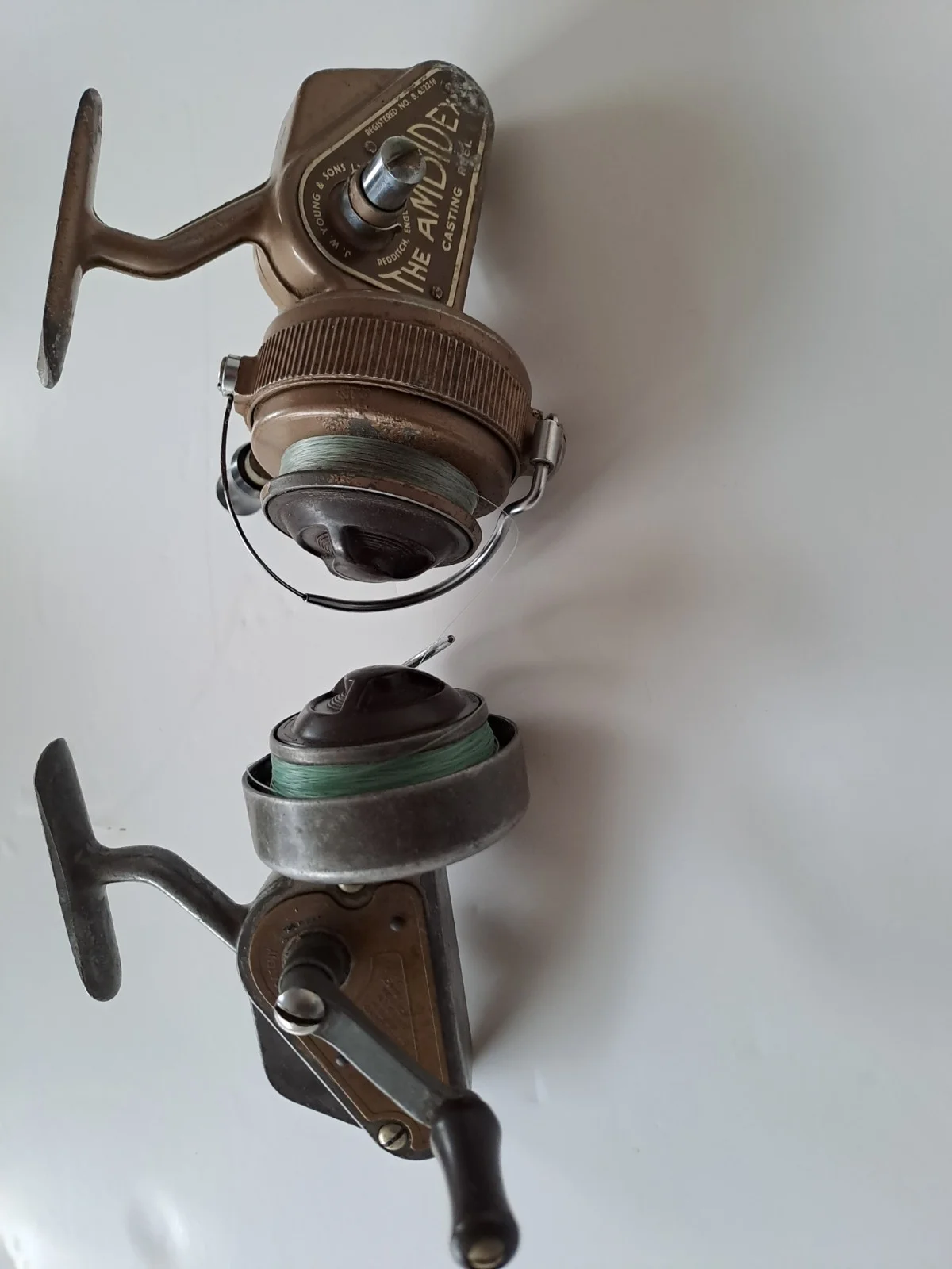 Here we have my dads 2 Ambidex reels So they must be about 60 years old oldest is No.1both work condition is as seen
