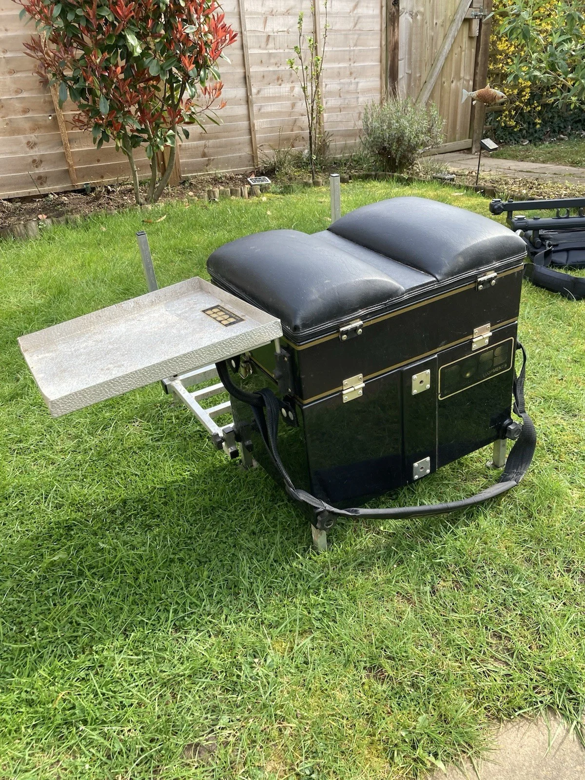 The Boss Tackle Developments Modulator Seat Box is a versatile fishing accessory designed for anglers. This seat box features an 6 drawer system with adjustable legs for added convenience. Made from a combination of wood, plastic, and metal, it is durable and waterproof, making it ideal for coarse fishing. The removable utility boxes, integrated seat, shoulder strap, and padded straps provide added comfort and functionality while on the water. The sleek black design adds a stylish touch to this practical and essential piece of angling equipment. Comes with waterproof box cover.