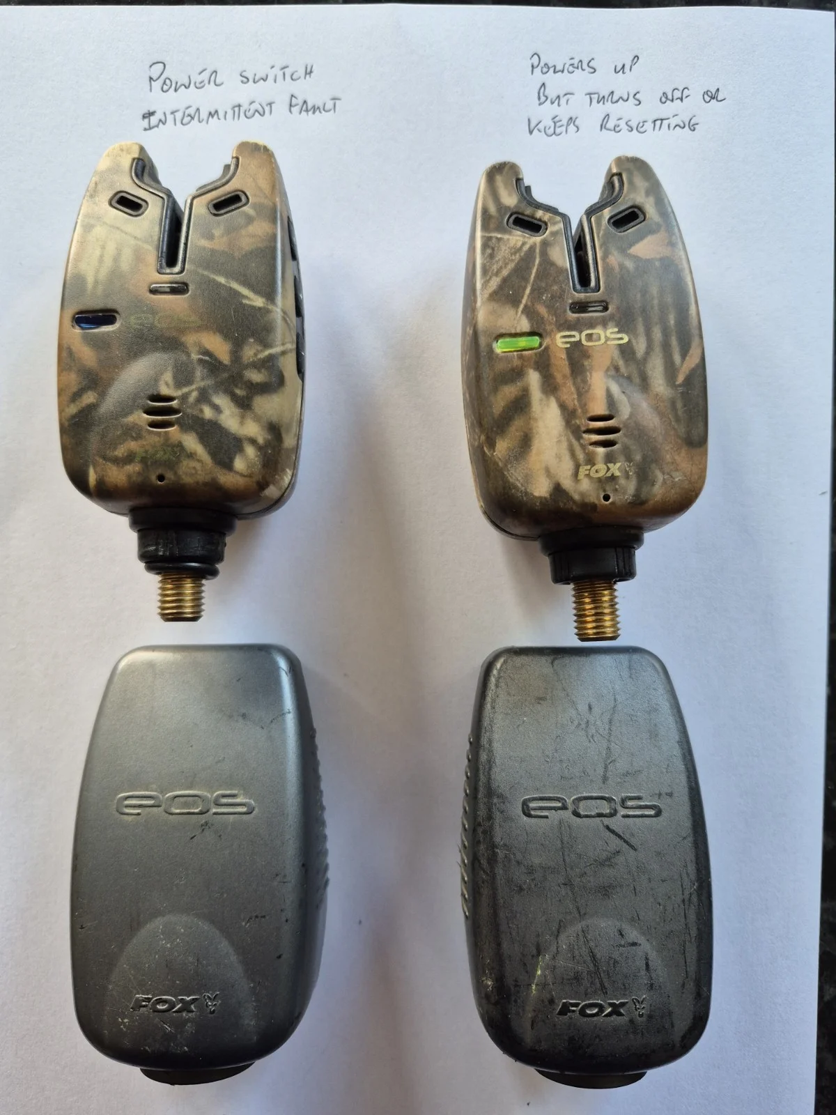 6 x Fox EOS-r Bite Alarms + Remote + Hard Cases + Extras - Spares or Repairs