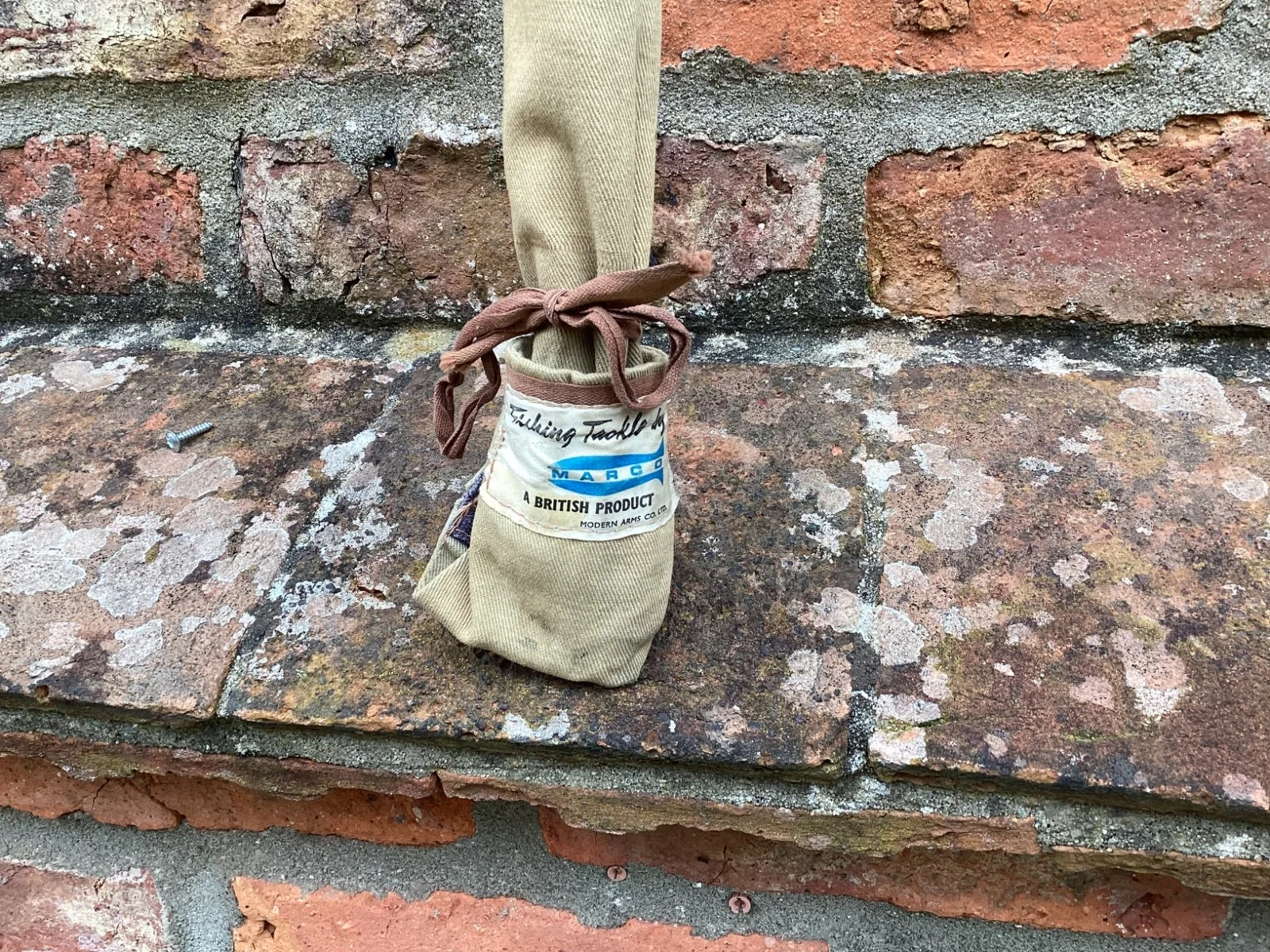 Fabulous Marco Tony Fordham glass fibre “the hornet” fly rod in great condition with original canvas bag, 7 1/4 inch shaped cork handle .lovley medium action wet fly rod in burgundy colour don’t miss this one happy bidding !!