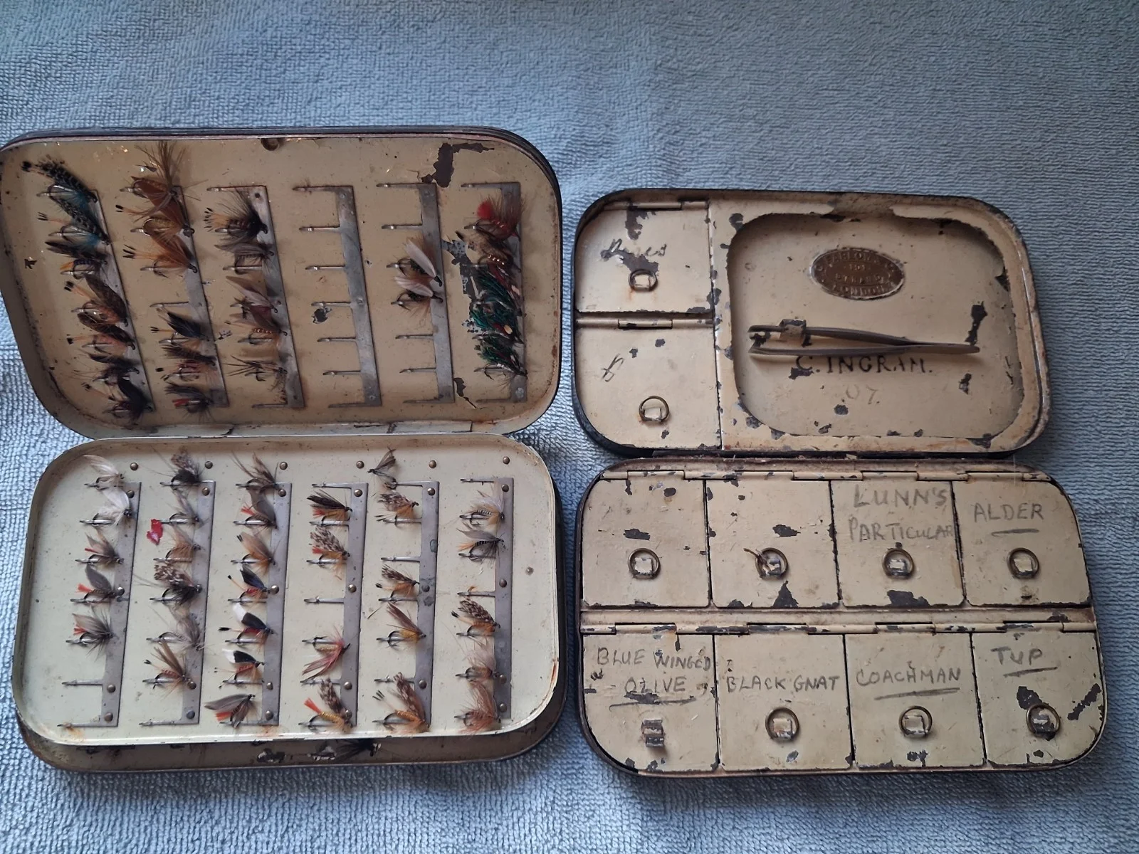 C FARLOW & CO & MALLOCH'S ANTIQUE VINTAGE FLY FISHING CASES & HAND TIED FLIES