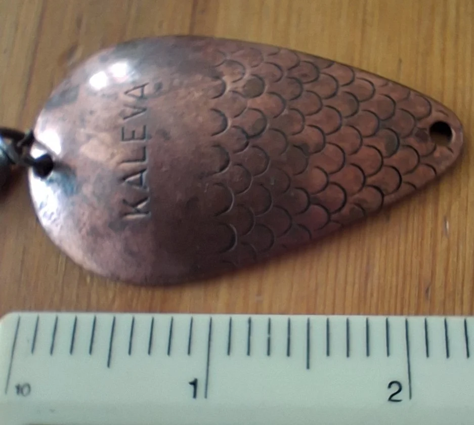 A nice very rare old Kaleva 'scaled' spoon bait stamped CFN in a diamond cartouche on the underside. See photos for condition. Possibly early circa 1925 Sweden LEIDESDORFT.