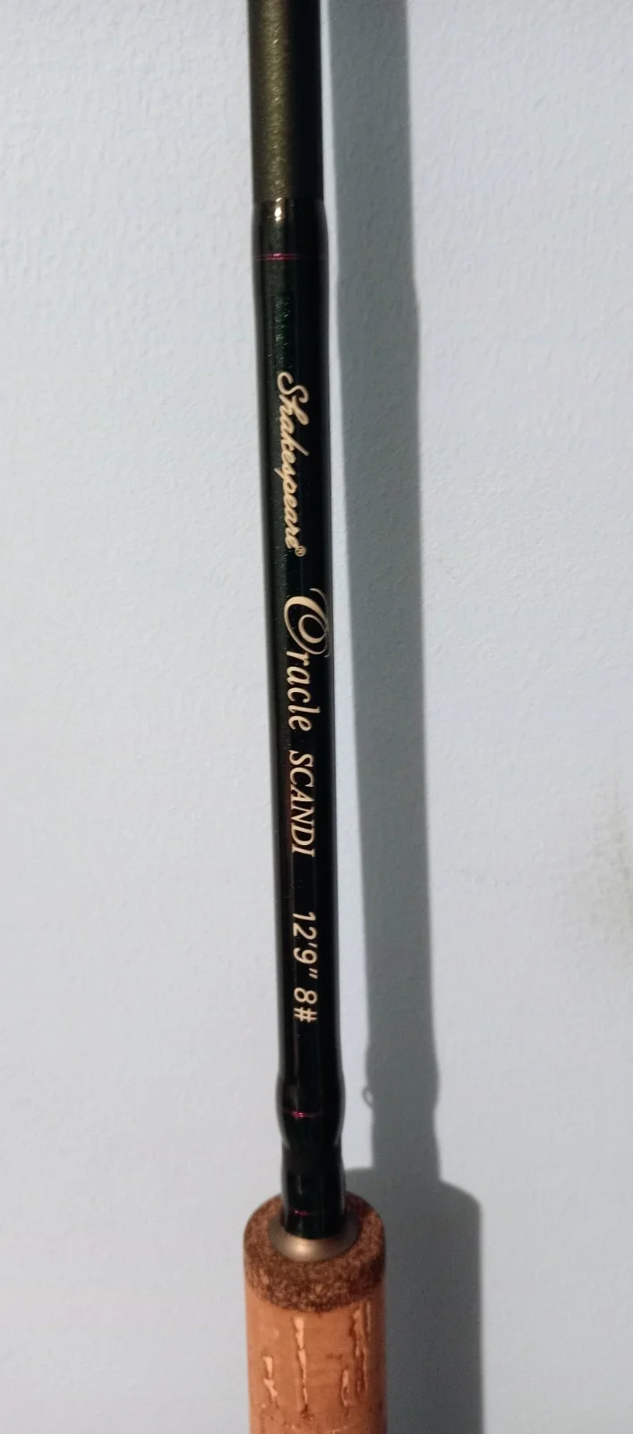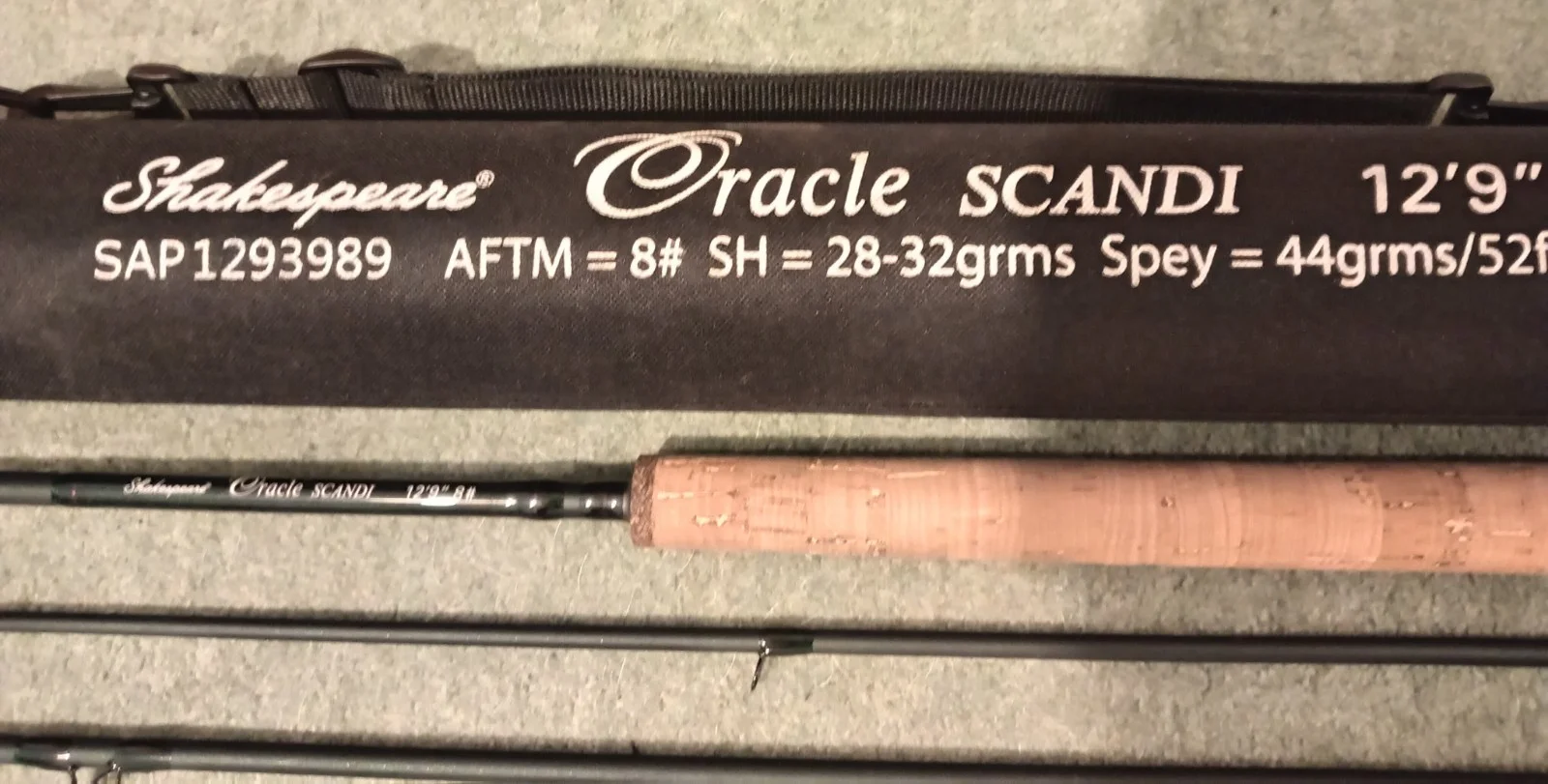 Shakespeare Oracle Scandi 12 ft 9 in #8. In good used condition, also comes with the rod tube.