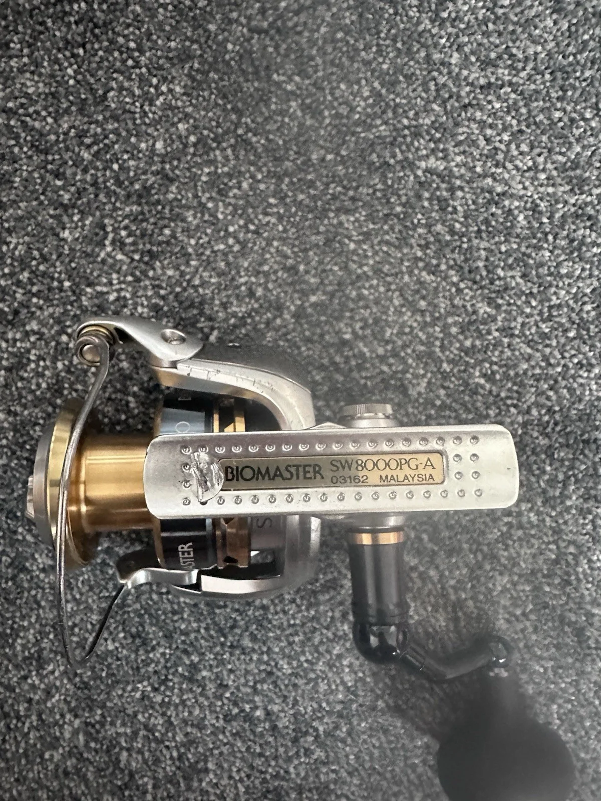 Shimano Biomaster SW8000PG reelFew cosmetic scratches on the rotor as can be seen in the pictures, but overall good condition and hardly used so internally will be excellent.