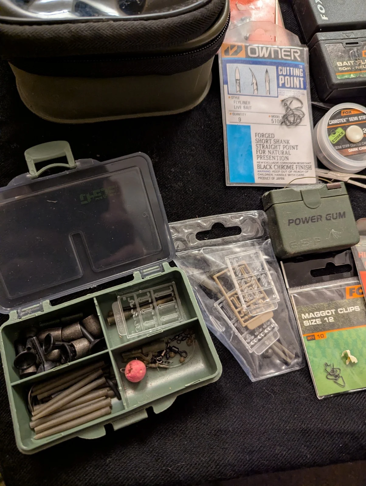 I have a korda compac storage case full of tackle to sell. Includes two fox system boxes, much of the tackle is new and unused. Everything from hooks, guru stuff, leads, lead core, chord rigs, braid, needle and drill, Nash foam and foam punch, korda interceptor, fox camotex braid (hardly used) and more! What you see is what you get.Many thanks for looking.Please feel free to ask any questions.