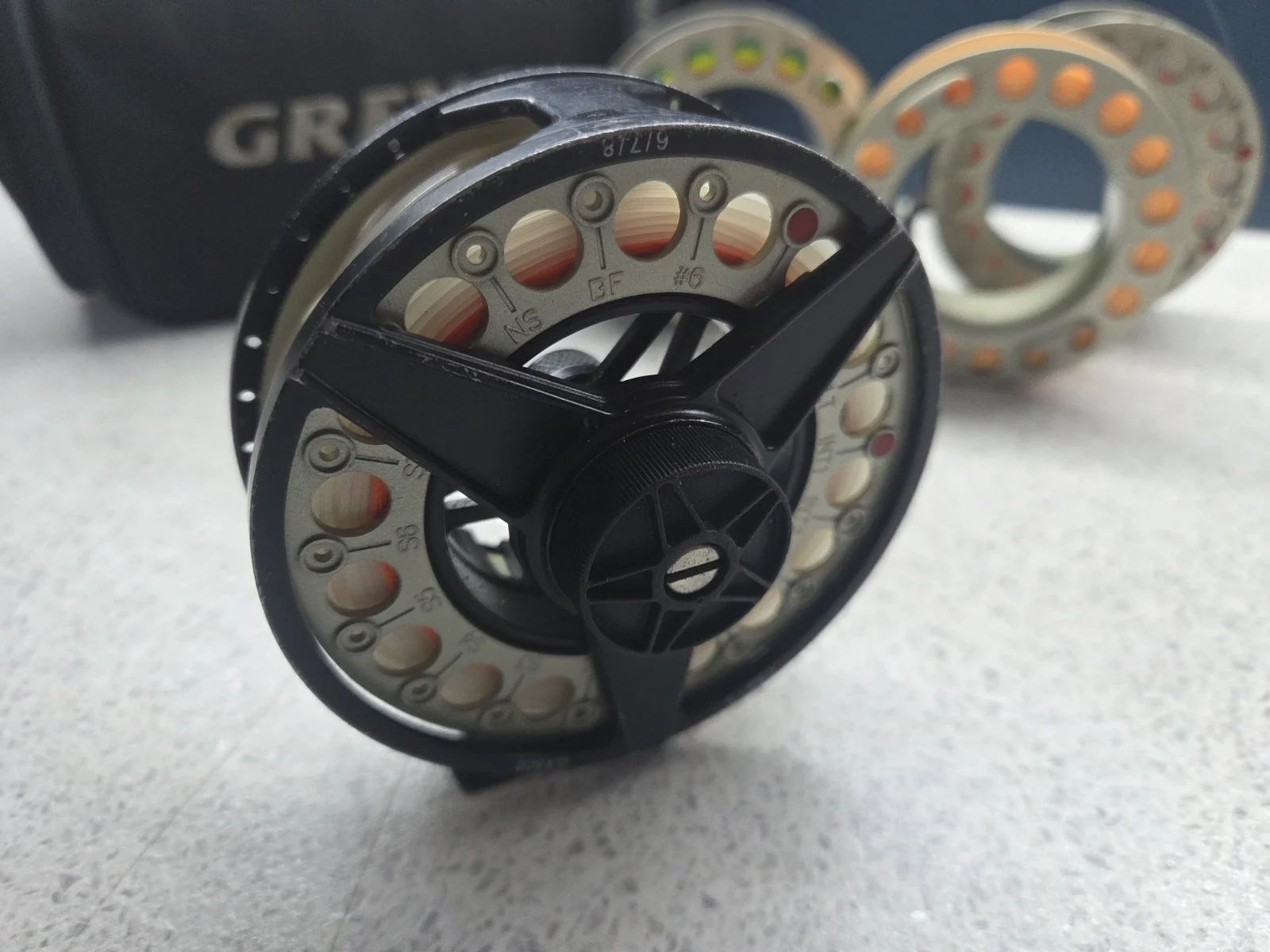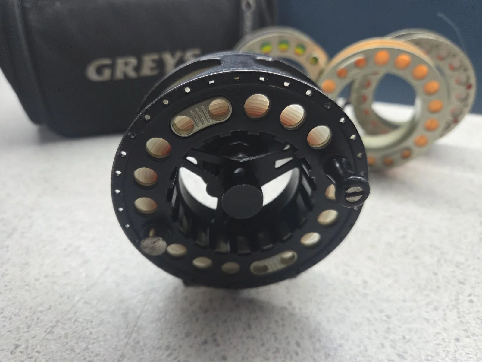 For Sale - Grays GX500 #6/7/8 Fly reel with 3 spare cassettes, fly lines and reel case. Has scratches on cage but in full working order! 🎣
