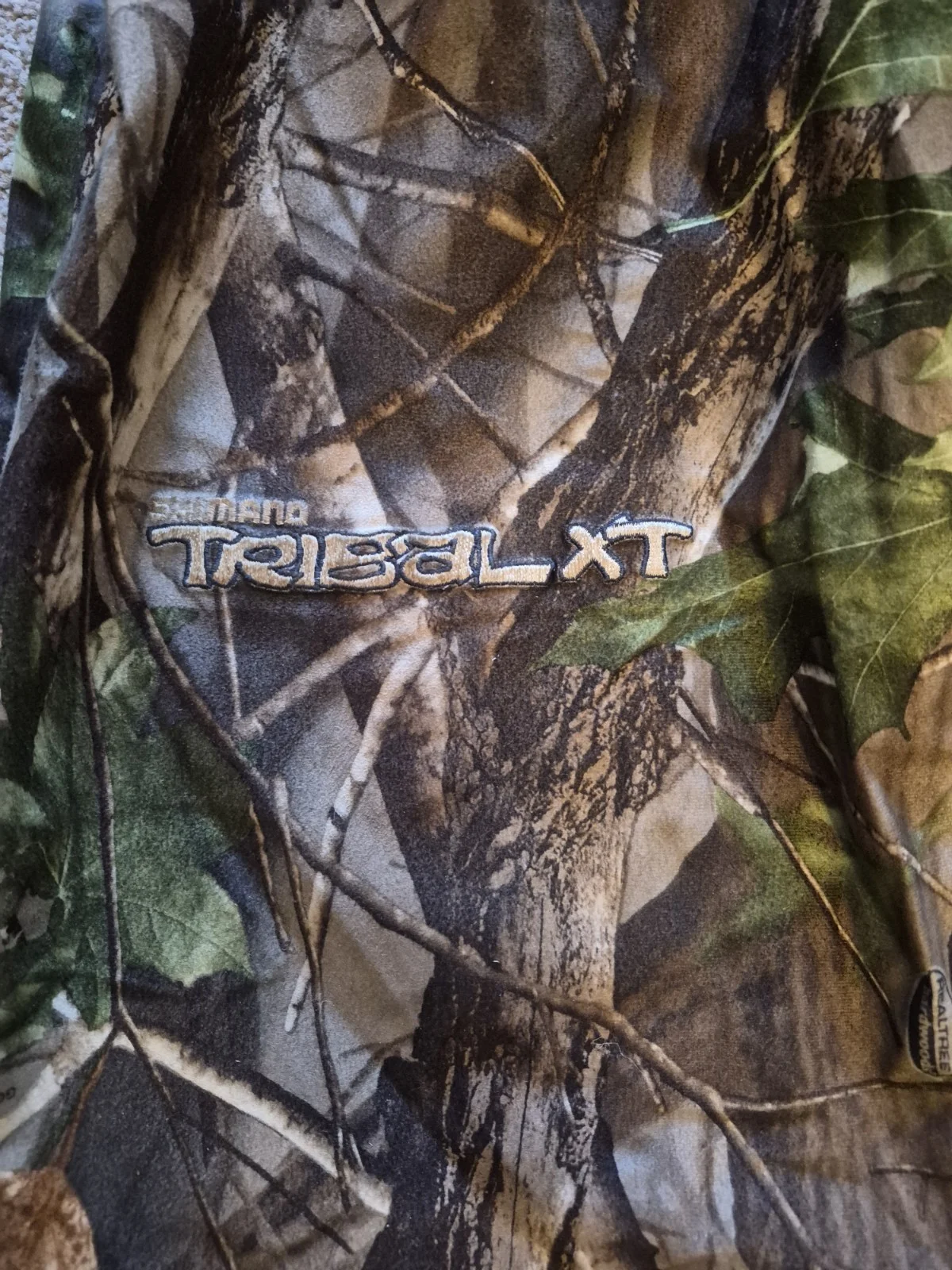 Shimano Tribal XT Realtree Jacket And Trousers, cap and gloves.