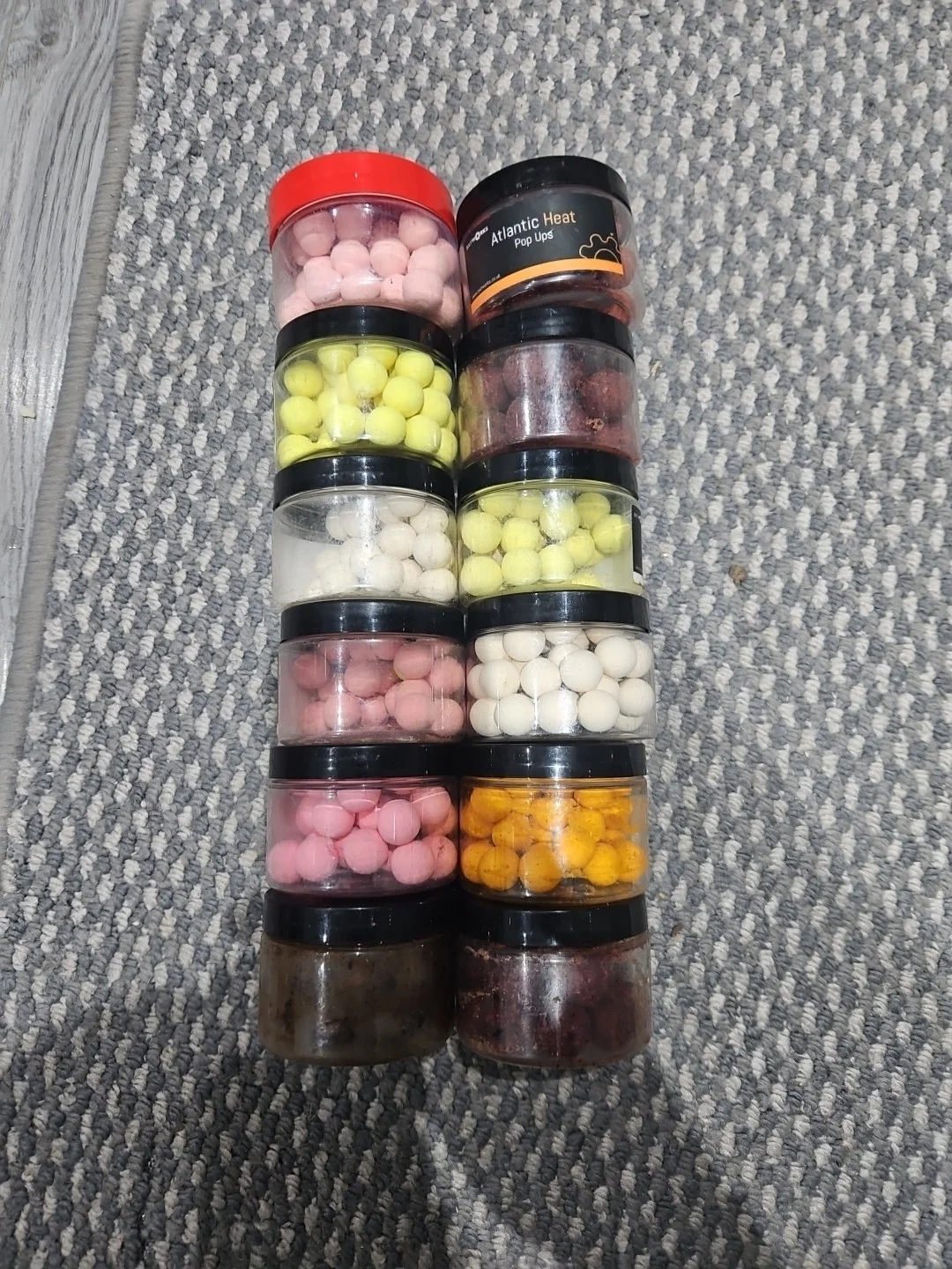 12 tubs of barely used baitworks pops and wafters heaven hell sea monster pineaphell