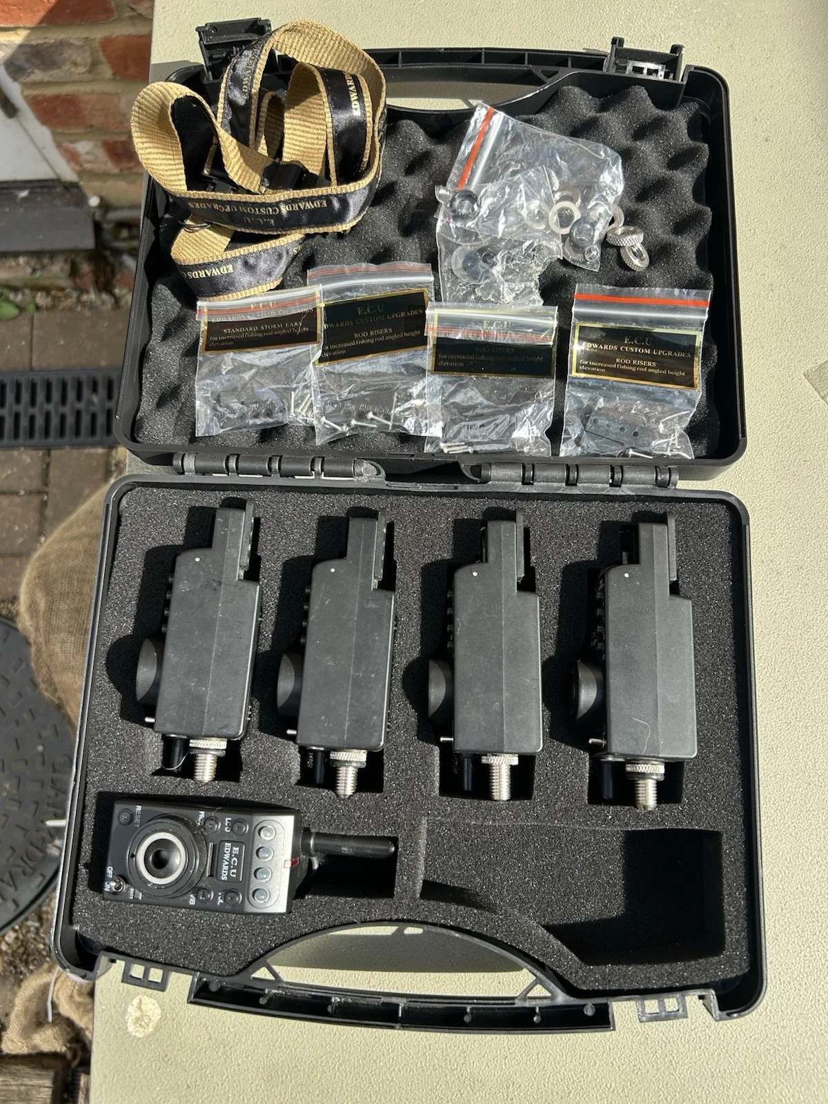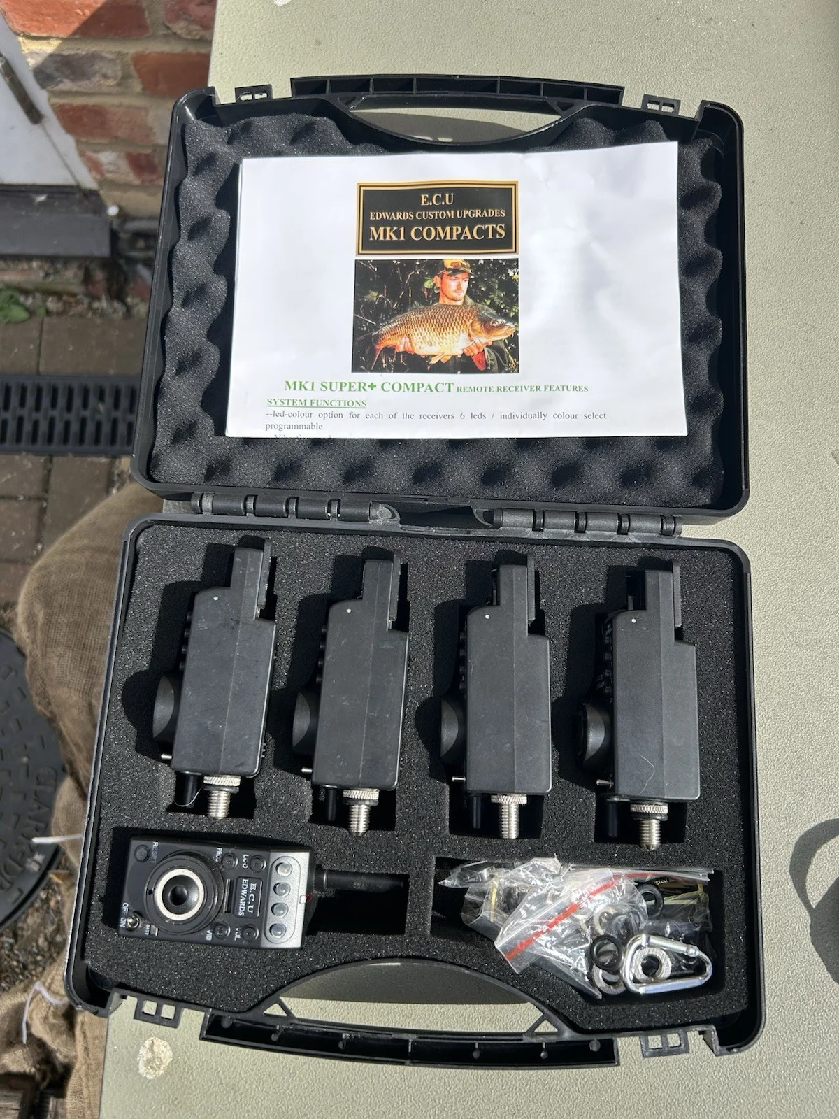 For sale we have the ECU super plus 4 rod set up with sounder box , also with 2 sets of the d2 hangers.The alarms are very very clean and tidy, all in full working order , the d2 hangers have never been used, just un boxed, so as good as new, see pictures.All alarms and sounder box comes supplied with the ECU covers as per picture.Postage to uk only or pick up if preferred.Happy bidding.