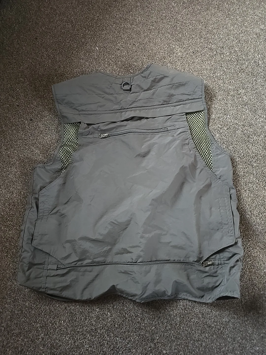 The Fishing / Rambling Vest Gillet is a practical and stylish addition to any fishing enthusiast's wardrobe. Made from a durable polyester blend, this sleeveless gilet features a zip closure for easy wear. The green colour and fish theme add a touch of fun to the activewear, perfect for fishing in the summer months. With a regular fit and XL size, this machine washable gilet is both comfortable and convenient for a day out on the water.in a good used condition. size XL but fits more like a small/medium. loads of pockets and zip away panel on the back. excellent item.