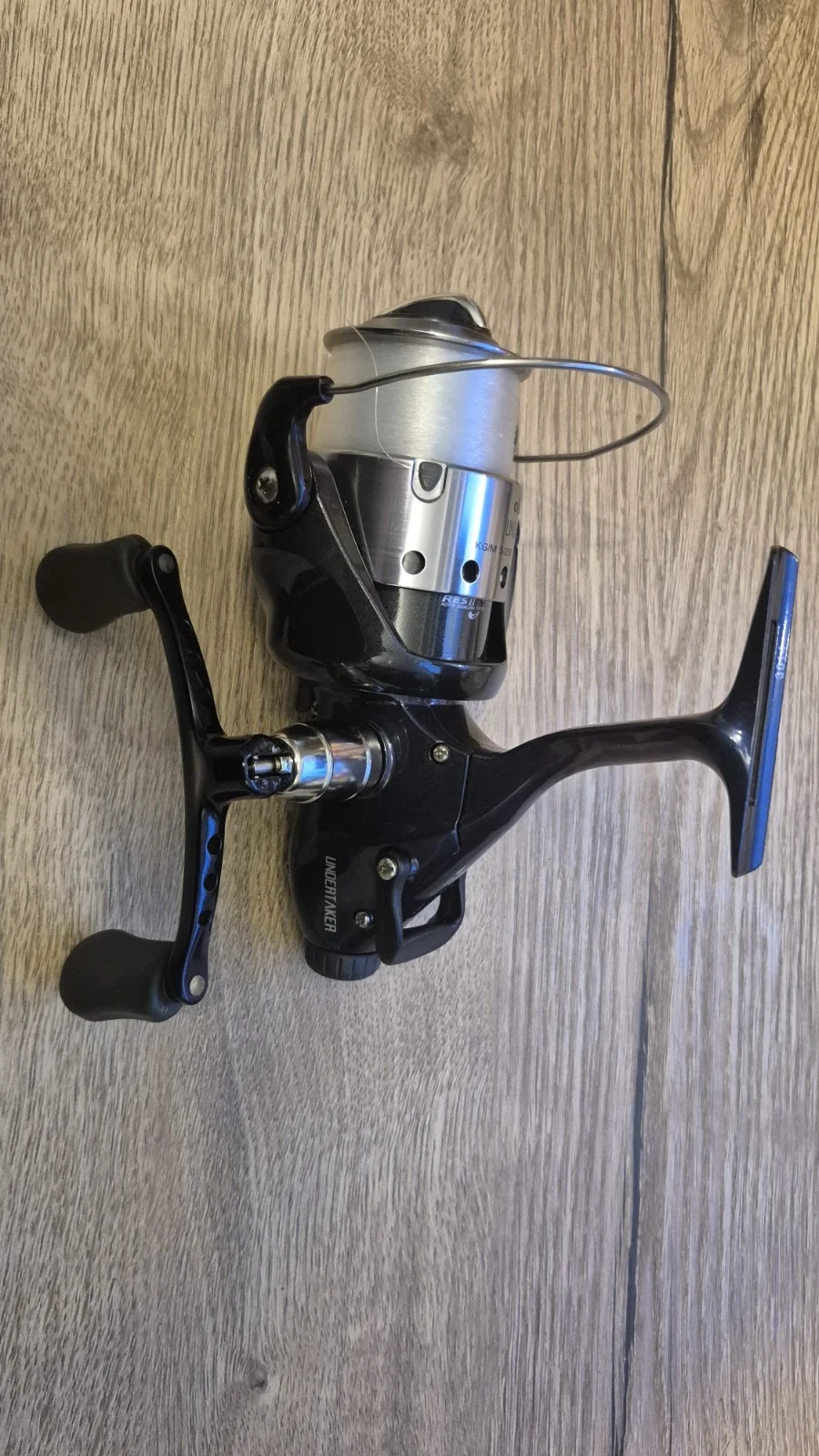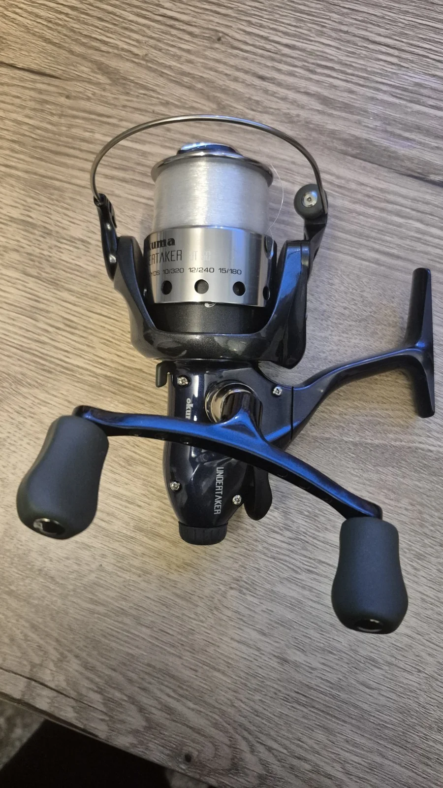 The Okuma Undertaker UT 50 Baitrunner Fishing Reel is a fully functional spinning reel designed for freshwater fishing. With a durable construction and smooth ball bearings, this reel is suitable for targeting all freshwater fish species. The rear drag system allows for easy adjustment of the drag, while the 6000 reel size ensures a balance of power and durability. The blue colour adds a stylish touch to this quality fishing reel from Taiwan's Okuma brand. Perfect for both left and right-handed anglers, this reel is a versatile and reliable choice for any fishing excursion. Used but in excellent condition.looks mint.