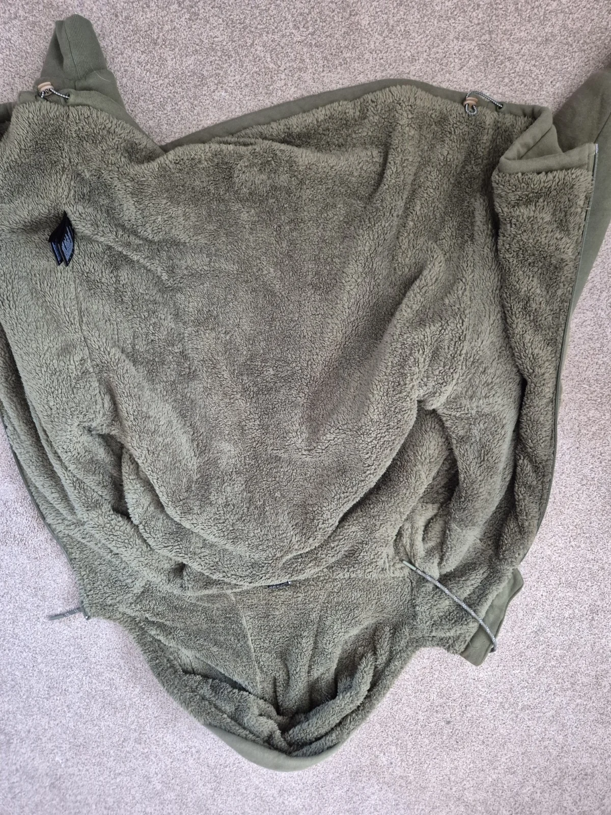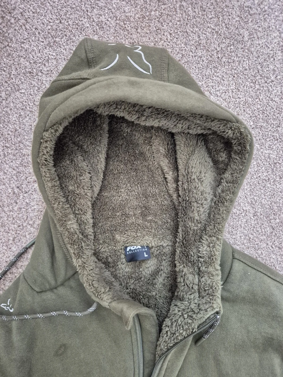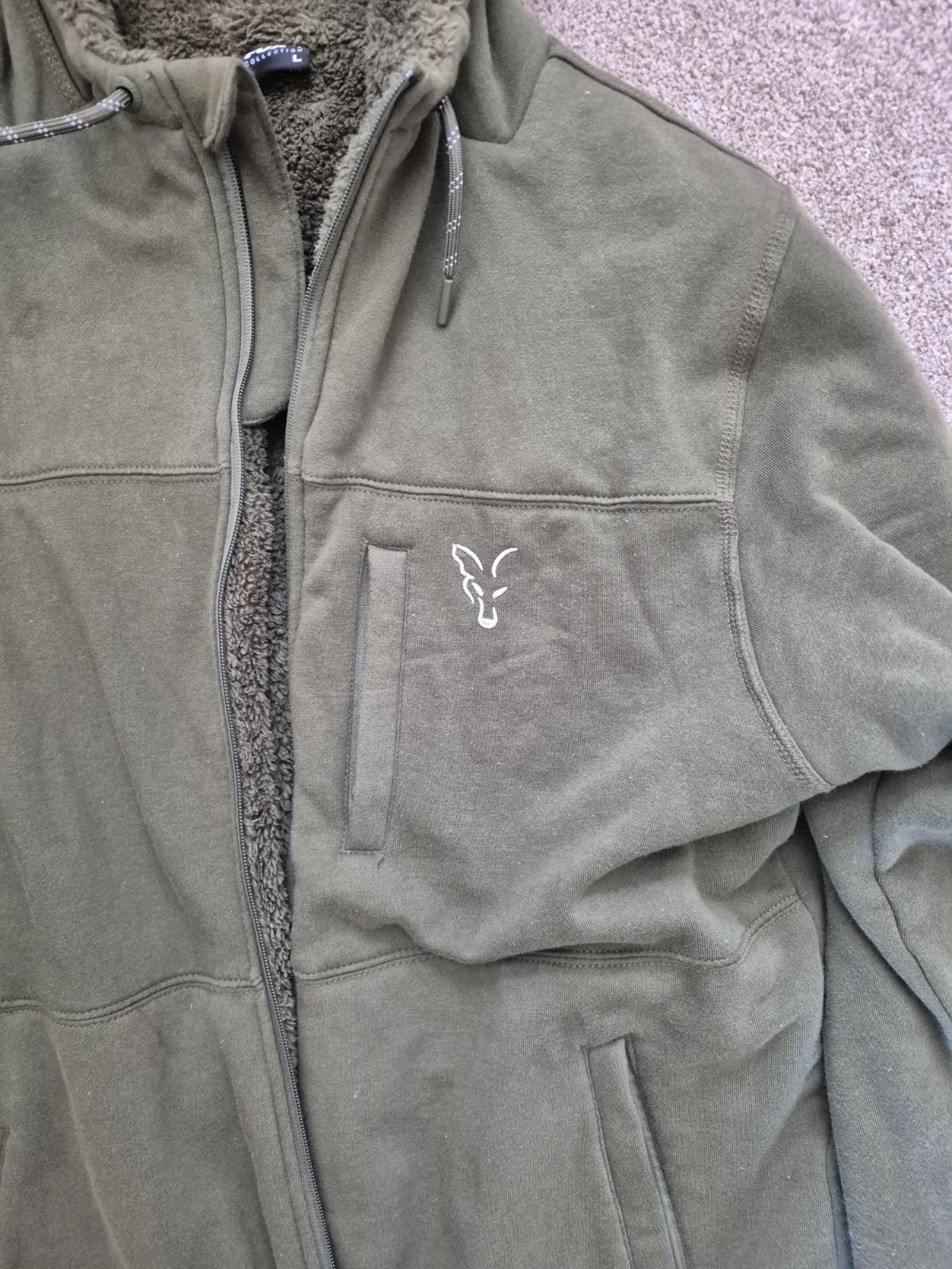 fox collection green & silver sherpa hoody excellent condition no holes all zips work.very warm.have other green & silver items for sale.any questions ask 07 921 75 27 44