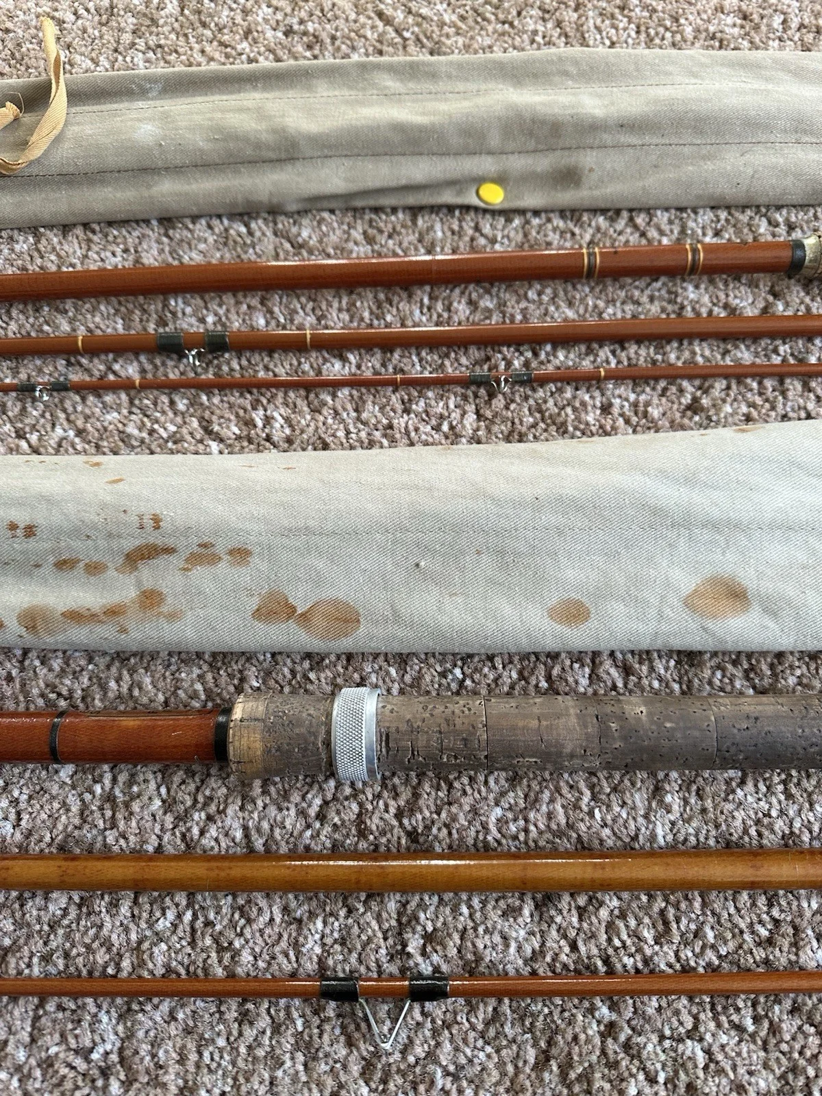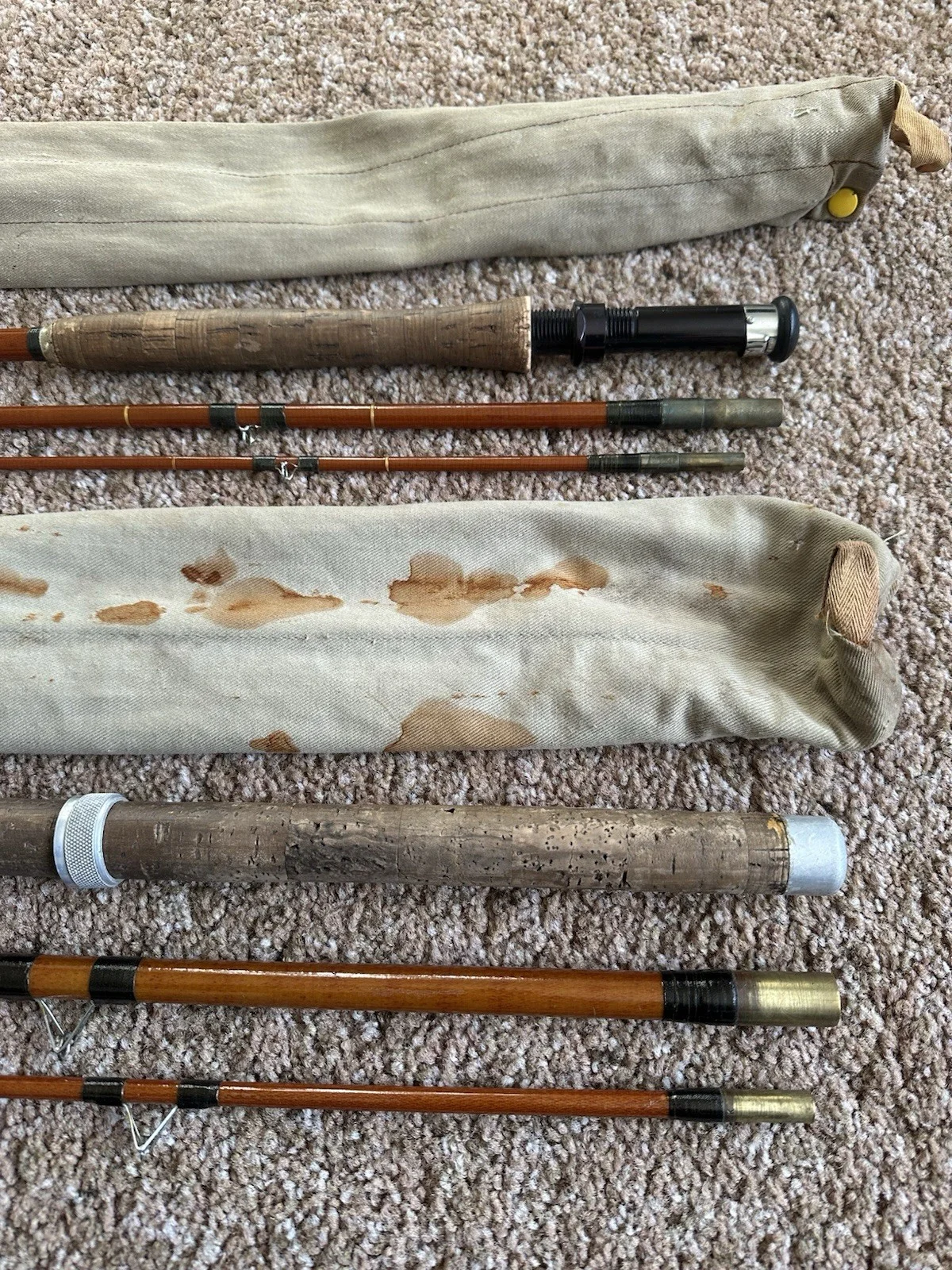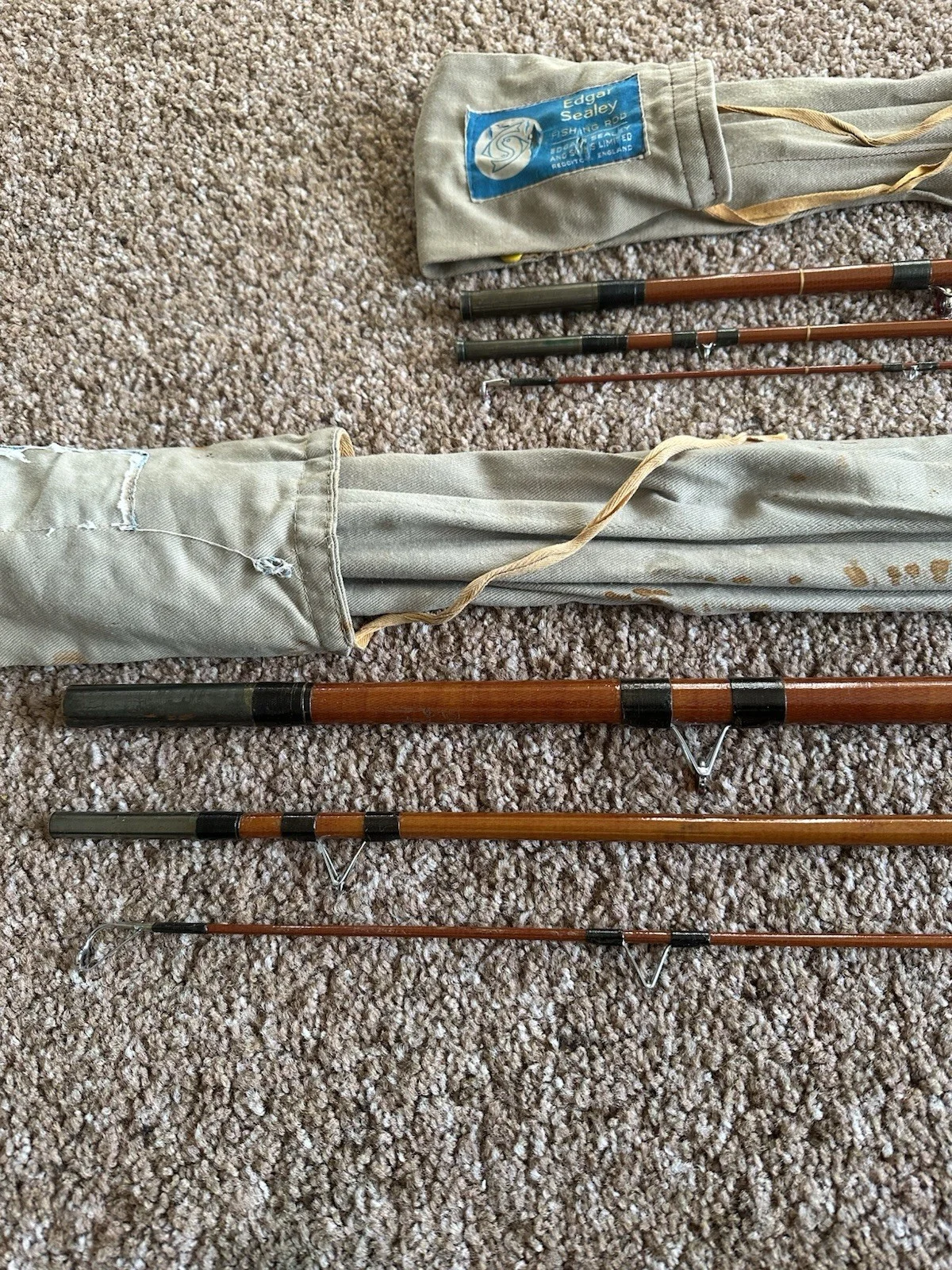 2 great condition old rods, Top is Black Arrow 2.9m fly rod. Most of the “Arrow” writing is missing but the rod itself is great condition and the eyes are excellent chrome condition with lined 1st and tip eye. Original bag.And secondly is the Black Arrow 11’ Float Rod, most of the “Black” writing is missing but the rod itself is in great condition, the eyes are in excellent chrome condition with the 1st and tip eye lined, Original bag but this has staining and the stitching has come undone near the bottom.Thanks for looking and any questions please ask, please view my other items,