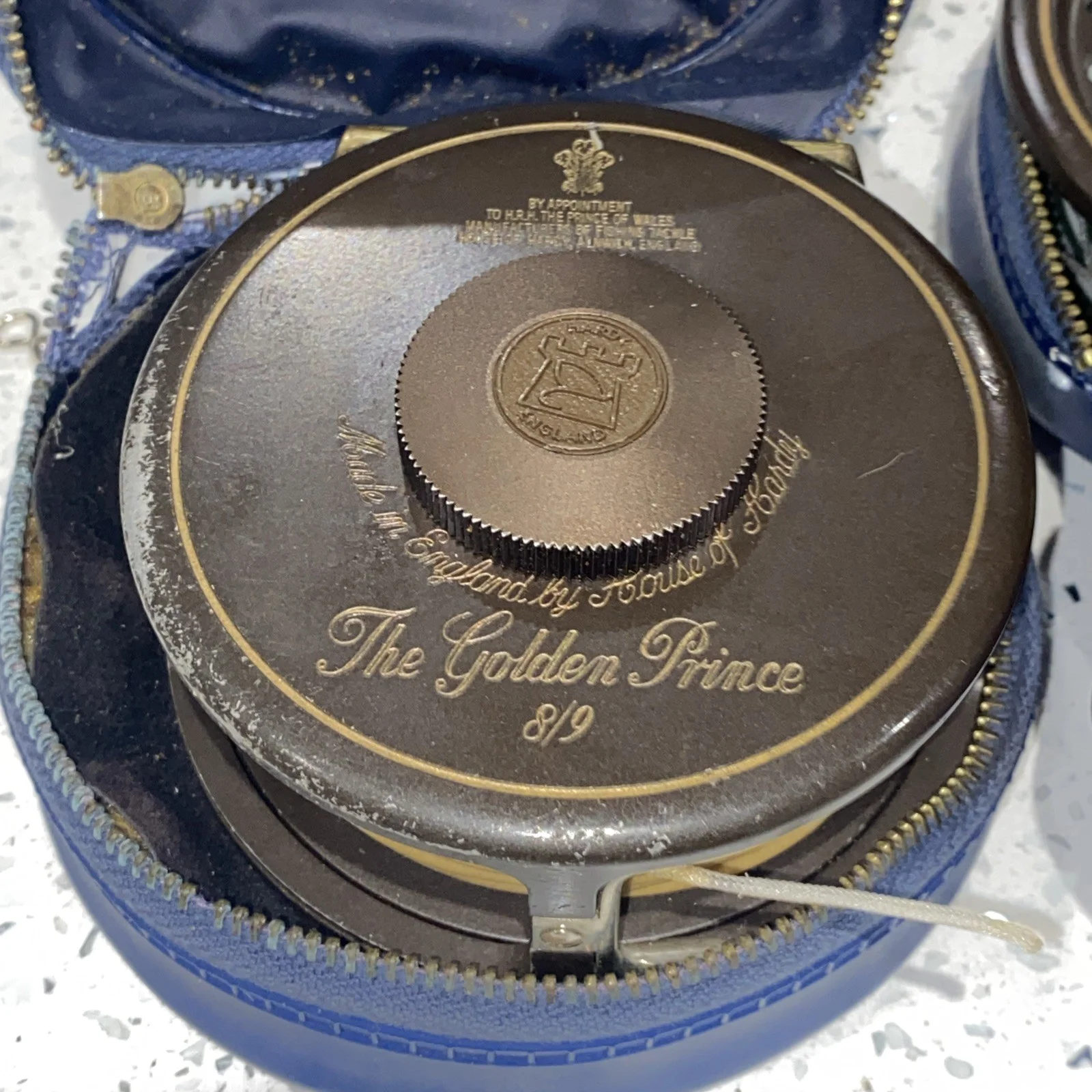 Vintage Hardy Golden Prince 8/9 Fly Reel with 1 spare Spool with Hardy CasesSee pictures for wear as there are marks on the lovely reel, note the zip on the reel case is broken.See my other fishing tackle No returns