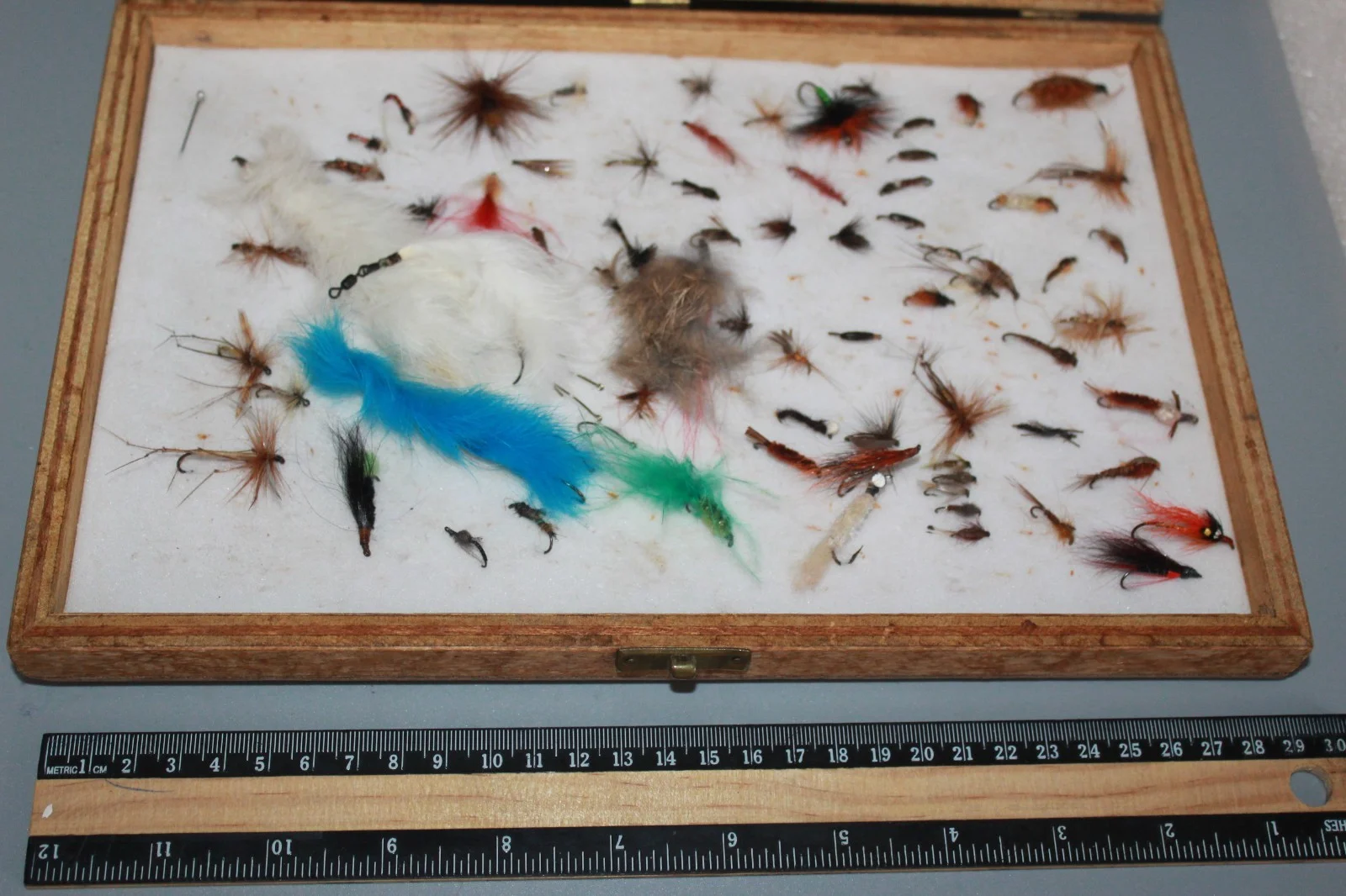 FLY FISHING WOODEN CASE WITH LARGE SELECTION OF FLIES PIKE / TROUT etcGood mixed lot.Case is 11.75 inches by 8 inchesgood used conditionPlease look at the photos as these form part of the description. Use the zoom to look closely at the item showing the condition of the item before bidding. Item shown in photos is the item for sale.All items unless stated are antique or vintage and will therefore by definition not be in new condition and may have signs of age or use, please be assured that we always endeavour to offer the most accurate description possible of the item's condition with illustrative photographs, please use zoom to take a closer look at photographs. Fishing reels and rods may have faults / damage that we may have missed. Any major faults will be listed. Some minor surface marks or flaws etc consistent with age and use and manufacture etc may not be mentioned unless they cause a problem on the whole to the item. If you need further information on condition please email us.We do combine postage costs but please wait for a combined invoice to be sent before paying for multiple purchases. We do not allow collection in person. PLEASE READPaymentPayment accepted by Ebay paymentsPostageGoods are posted upon cleared payment. Postage Postal charges include a small charge for packing materials. We post within three working days of cleared payment, Proof of posting is always obtained, Overseas buyers please allow for a reasonable time for your package to arrive as airmail delivery times can vary from country to country.UK Postage & packaging will be combined to keep costs down wherever possible.In the event of any problems please let us know as problems can nearly always be solved. Please contact us through ebay messages.ReturnsAt auction all sales are final, although we do offer, in compliance with distance selling regulations, a 14 day returns policy for items which have been inaccurately described or purchased Buy it now or via our ebay shop. Any problems please report them within 3 days of receiving the item.If, on receipt of an item, you are not entirely satisfied, a full refund is available on safe return of the item to us (excluding postage costs). Items must be returned in original packaging and sent by recorded / trackable postWe do not offer partial refunds. No returns will be accepted without prior approval and agreement. Return postage will not be refunded unless agreed prior to the return.FeedbackPlease leave feedback upon receipt of item so that we know you have received your item and we will leave feedback in return. If there is a problem please contact us first as problems can usually be resolved.