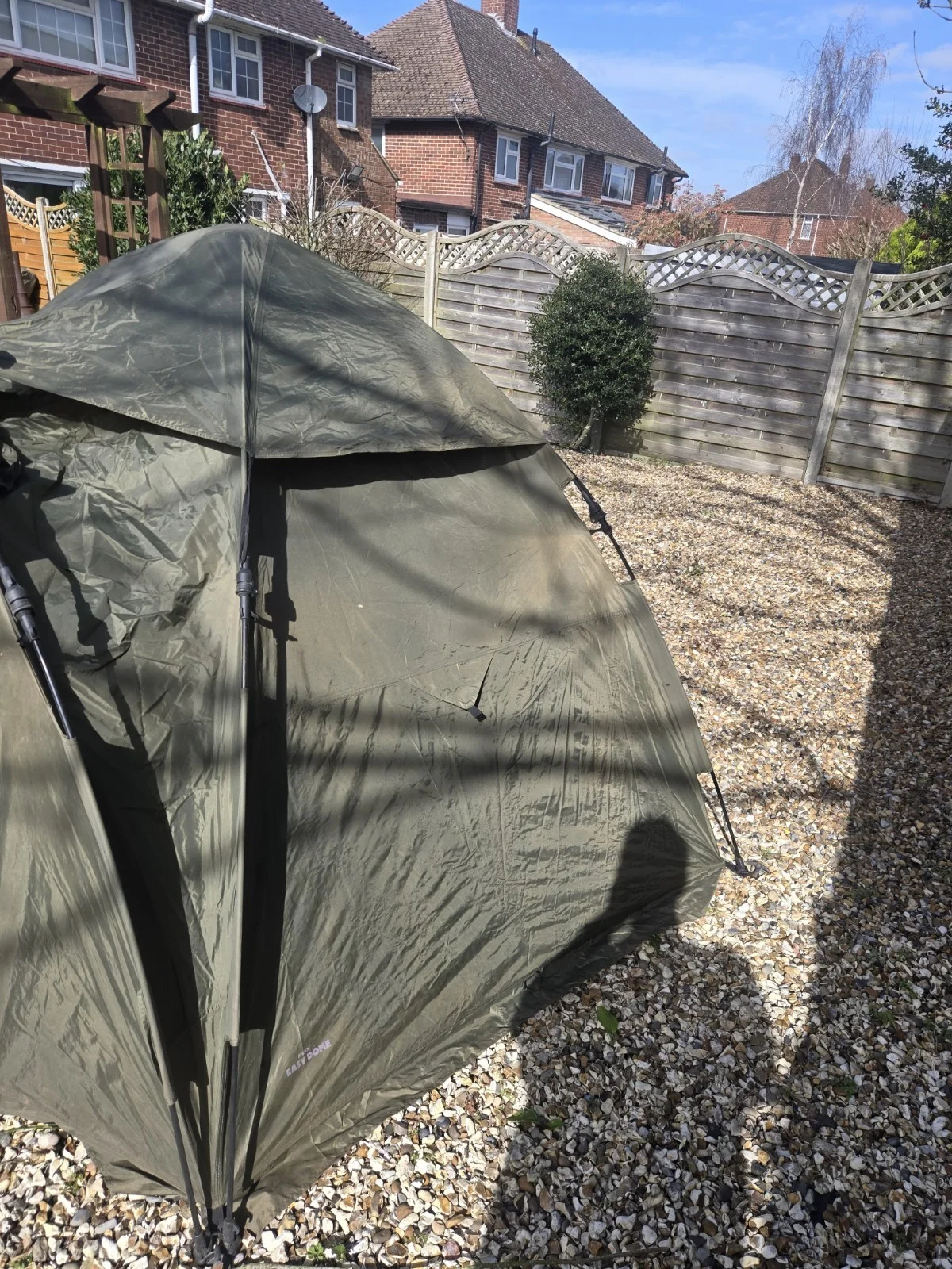 Product OverviewThe Fox Green Easy Dome 1 Man Maxi is a legendary, quick-pitch bivvy designed for the solo angler. Known for its generous "Maxi" internal space and rock-solid reliability, this Fox shelter offers excellent protection and comfort for your sessions. Its classic green finish and easy-to-use frame make it a staple for any carp or specialist angler.Important Condition Note (Please Read)Missing Part: Please note that the window panel is missing.Best Use: Because of the missing panel, this bivvy is ideally suited for dry weather sessions, summer nights, or as a high-quality day shelter where maximum ventilation is preferred.Key FeaturesFox Quality: Built by one of the most trusted brands in angling for ultimate durability.Maxi Edition: Extra internal head-room and floor space compared to standard one-man bivvies.Easy-Pitch Design: The "Easy Dome" system allows for a rapid setup, so you can spend more time fishing and less time building.Ventilation: Features two integrated rear windows and a single door for excellent airflow during warmer months.Durable Fabric: Heavy-duty green material designed to withstand the rigors of the bankside.SpecificationsBrand: FoxModel: Easy Dome 1 Man MaxiCapacity: 1 Person + GearColor: Carpy GreenShipping & ReturnsSold as seen due to the missing window panel.Fast, tracked shipping to ensure it reaches you safely.