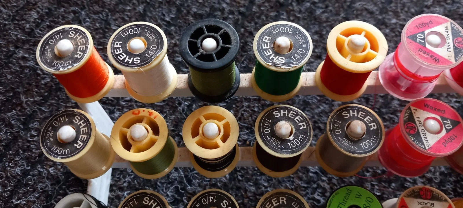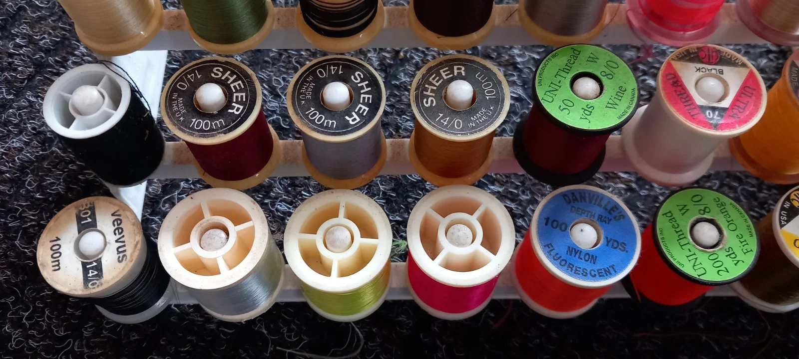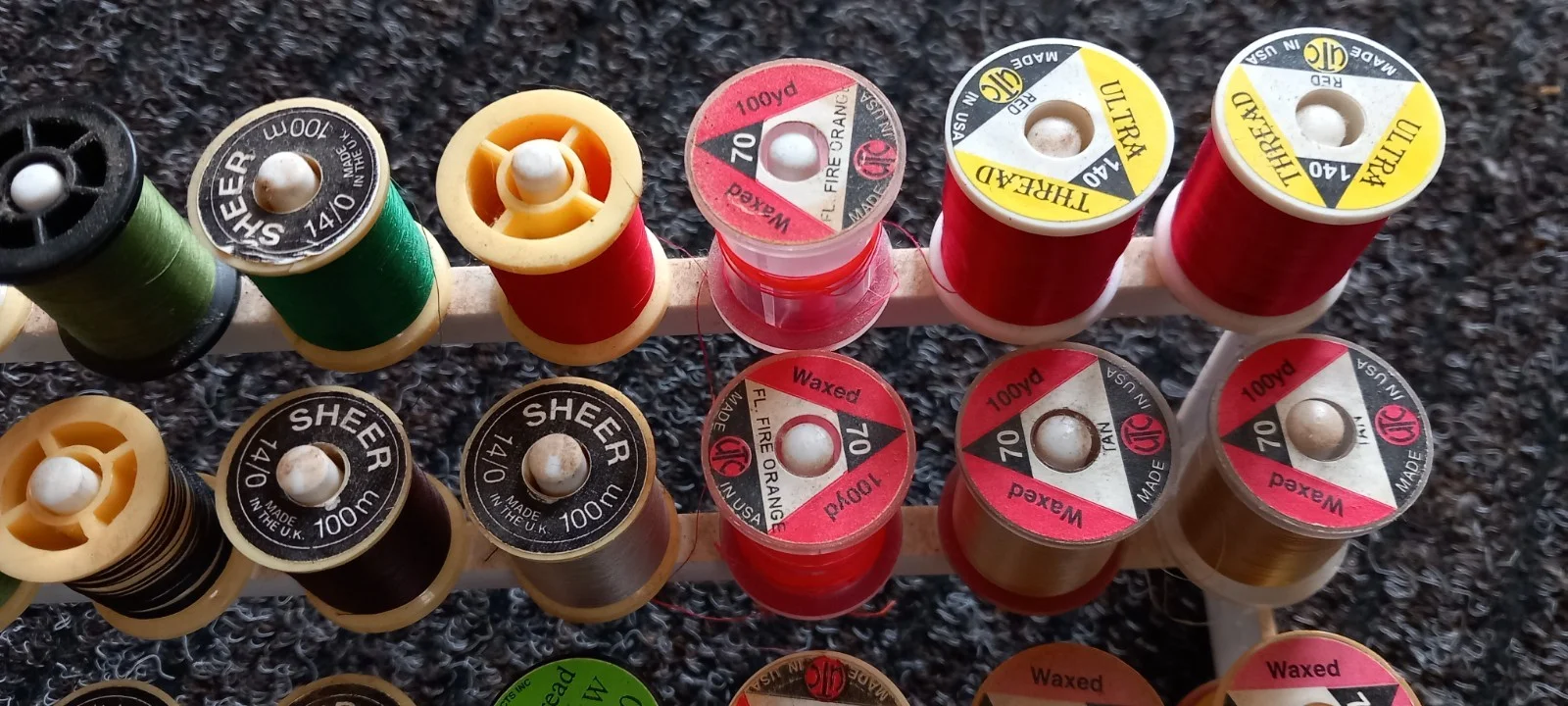 32 Mixed Treads And Flosses With Stand. Fly Tying Materials.
