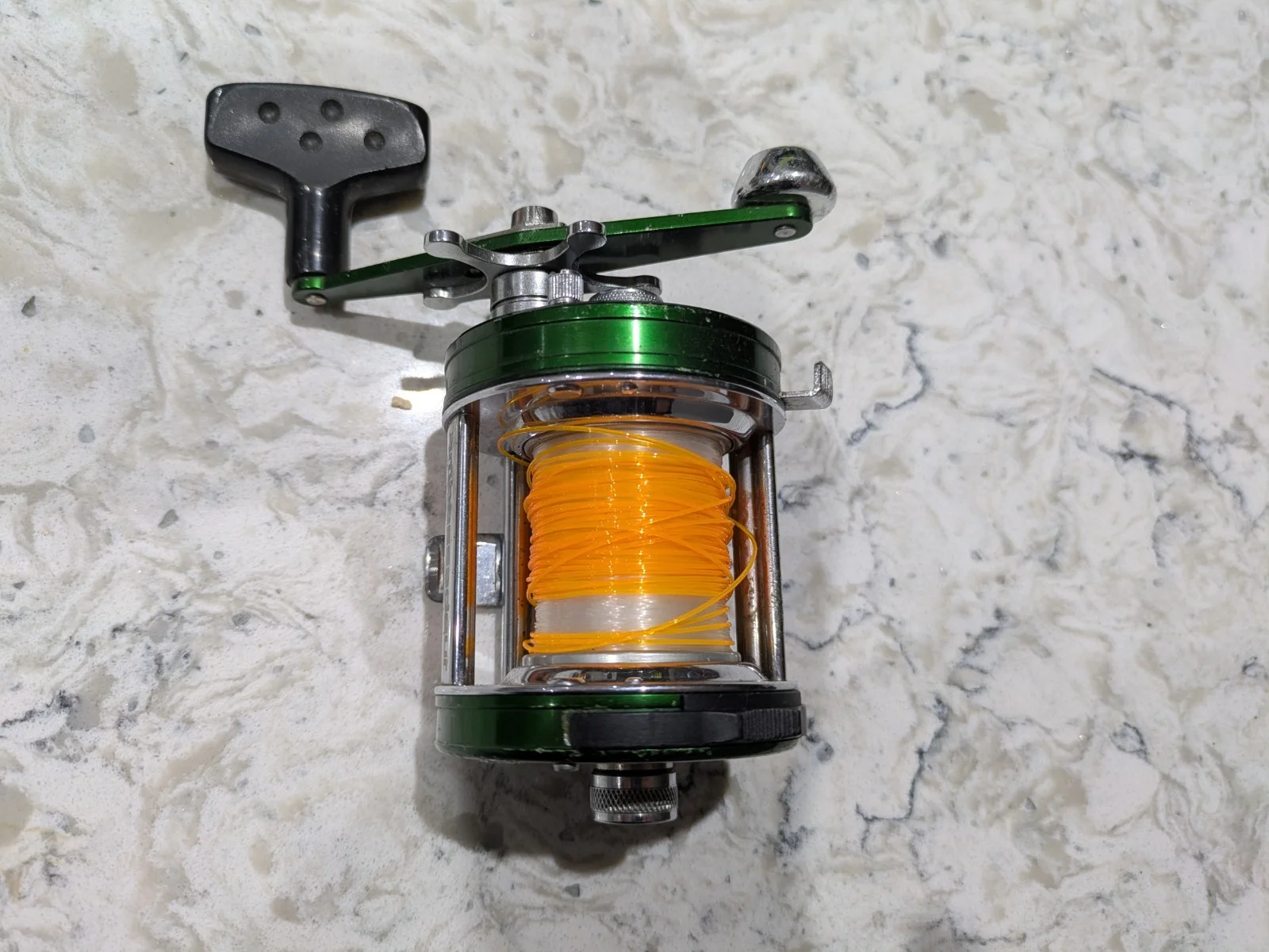 The Abu Garcia Ambassadeur 6500 C3 CT Mag Elite Green Multiplier Reel is a high-quality baitcast reel designed for saltwater fishing. With its durable aluminium construction and star drag system, this reel is built to last and withstand tough fishing conditions. The right-hand retrieve and green colour add a touch of style to this reliable and versatile fishing tool. Whether you're targeting a variety of saltwater fish species, this Abu Garcia reel is sure to enhance your fishing experience. Used but in very good nice condition, I've used this reel for a couple of years now & found it to be one of the very best reels I've ever used for bait casting. Simple to use wtih magnetic brake system sliding controler. Super smooth running reel on casting out, works as it should and in great used condition. Zoom in on the photos and see the condition for yourself. Don't miss this one.No box but will be perfectly packed up.