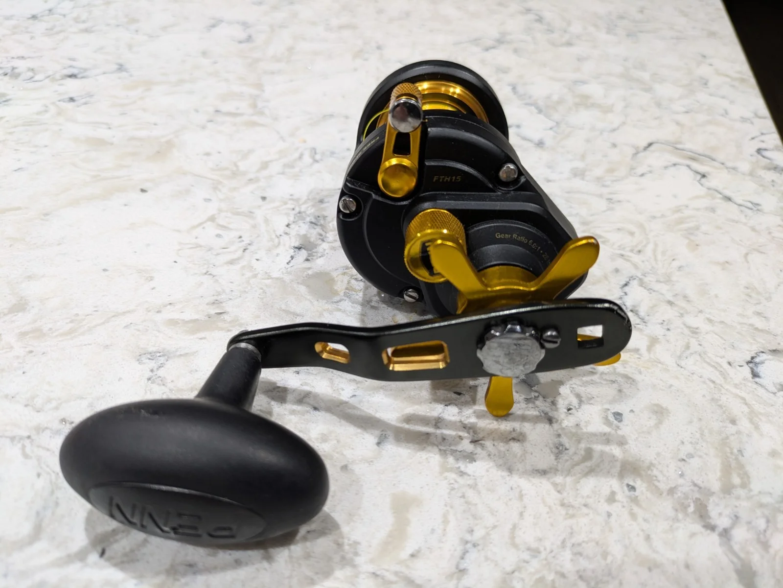 Penn Fathom II.15. Black/Gold Star Drag Bait Casting Reel.