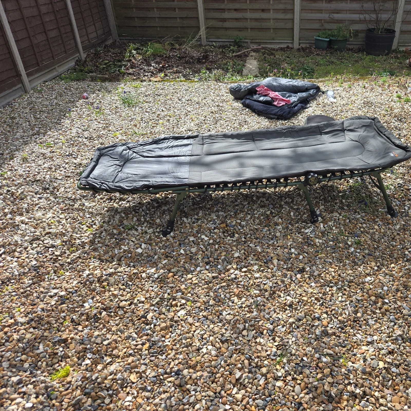 Relax in comfort during long sessions with the TF Gear Wide 6‑Leg Fishing Bed Chair, designed for strength, stability and all‑day support.Built with a durable aluminium frame, this bedchair provides excellent strength without unnecessary weight. The 6‑leg design ensures stability on uneven banks, while the wide sleeping area delivers plenty of room to stretch out and rest.✅ Key FeaturesStrong Aluminium Frame – Lightweight yet extremely durable.Stable 6‑Leg Support – Ideal for soft or uneven ground.Wide & Comfortable – 200cm length and 77cm width for maximum relaxation.50cm Height – Easy to get in and out of.Designed for 1 Person – Perfect for long carp sessions.Colour: GreenWhether you're at the lake, river, or on a long overnight carp session, this TF Gear bedchair offers comfort and reliability you can trust.✅ ConditionFully assembled and in good working order.
