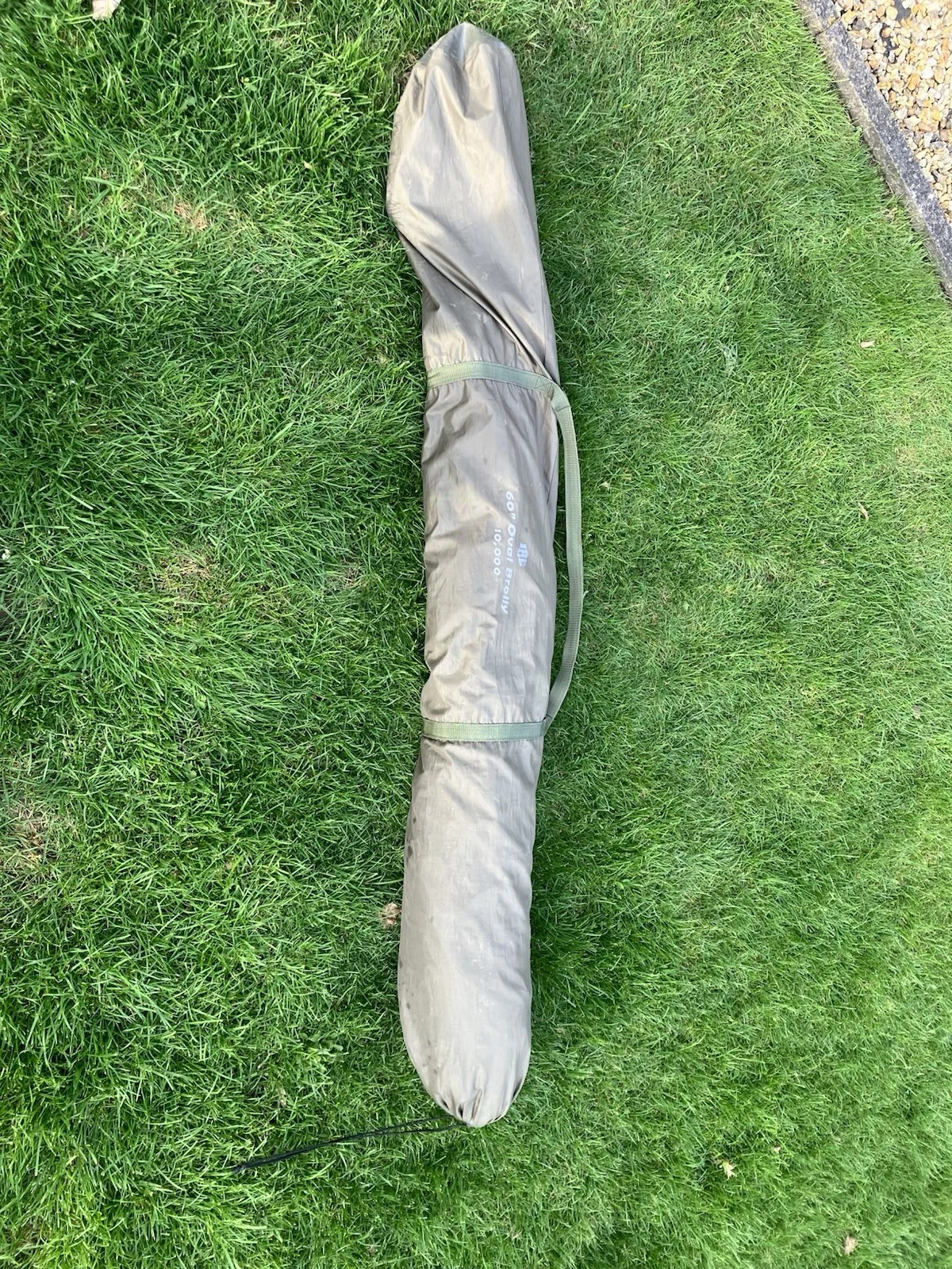 JRC Oval Brolly 60”. Good condition, no rips, tears or holes, fully waterproof. Detachable groundsheet, set of 8 JRC pegs. 4 screw points for attaching storm poles. Ideal for over nighters or day sessions. Lightweight, includes carry bag. Sorry no postage, collection only from WN40SN.