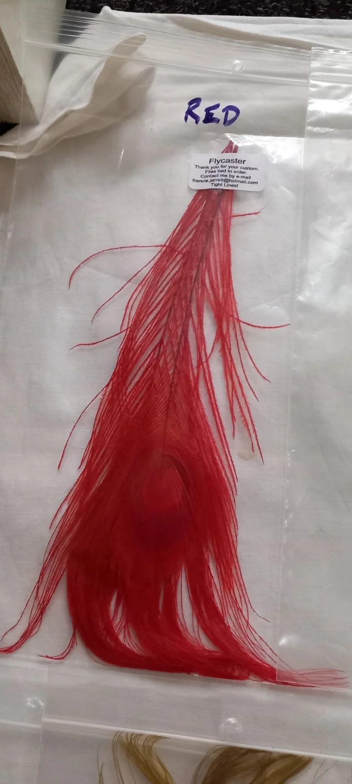 Lot 56. Fly Tying Materials. Stripped Dyed Peacock Feathers.